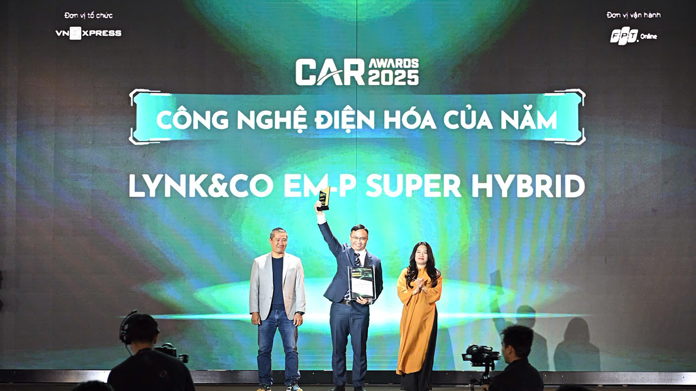 Ngoài ra, Ban Tổ chức cũng trao giải Công nghệ điện hoá của năm cho hệ truyền động PHEV của Lynk&Co, thể hiện trên mẫu 08 tại Việt Nam