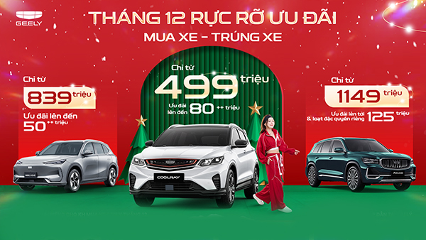 Geely Việt Nam vừa khởi động chương trình khuyến mại lớn nhất năm mang tên “May mắn cùng Geely | MUA XE - TRÚNG XE”, nhằm tri ân và gia tăng lợi ích cho khách hàng mua xe dịp cuối năm.