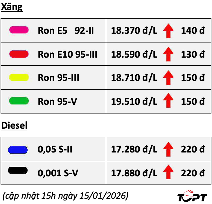 Các mặt hàng xăng dầu đồng loạt tăng nhẹ giá bán trong đợt điều chỉnh ngày 15/1.