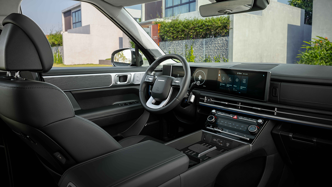 Nội thất cao cấp với cụm màn hình cong Panorama 12,3 inch nối liền, cần số điện tử dạng xoay tích hợp sau vô lăng, cùng các tiện nghi như sạc không dây đôi (15W) và cổng sạc USB-C (27W).