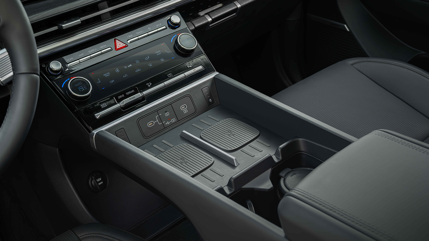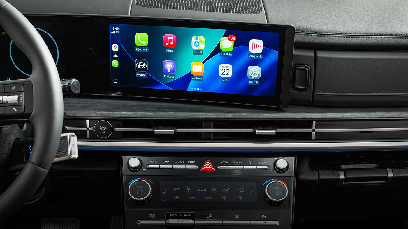 Điểm nhấn kỹ thuật giúp Santa Fe Hybrid nổi bật chính là hệ thống động lực Turbo-Hybrid kết hợp công nghệ TMED (Transmission Mounted Electric Device) độc quyền.