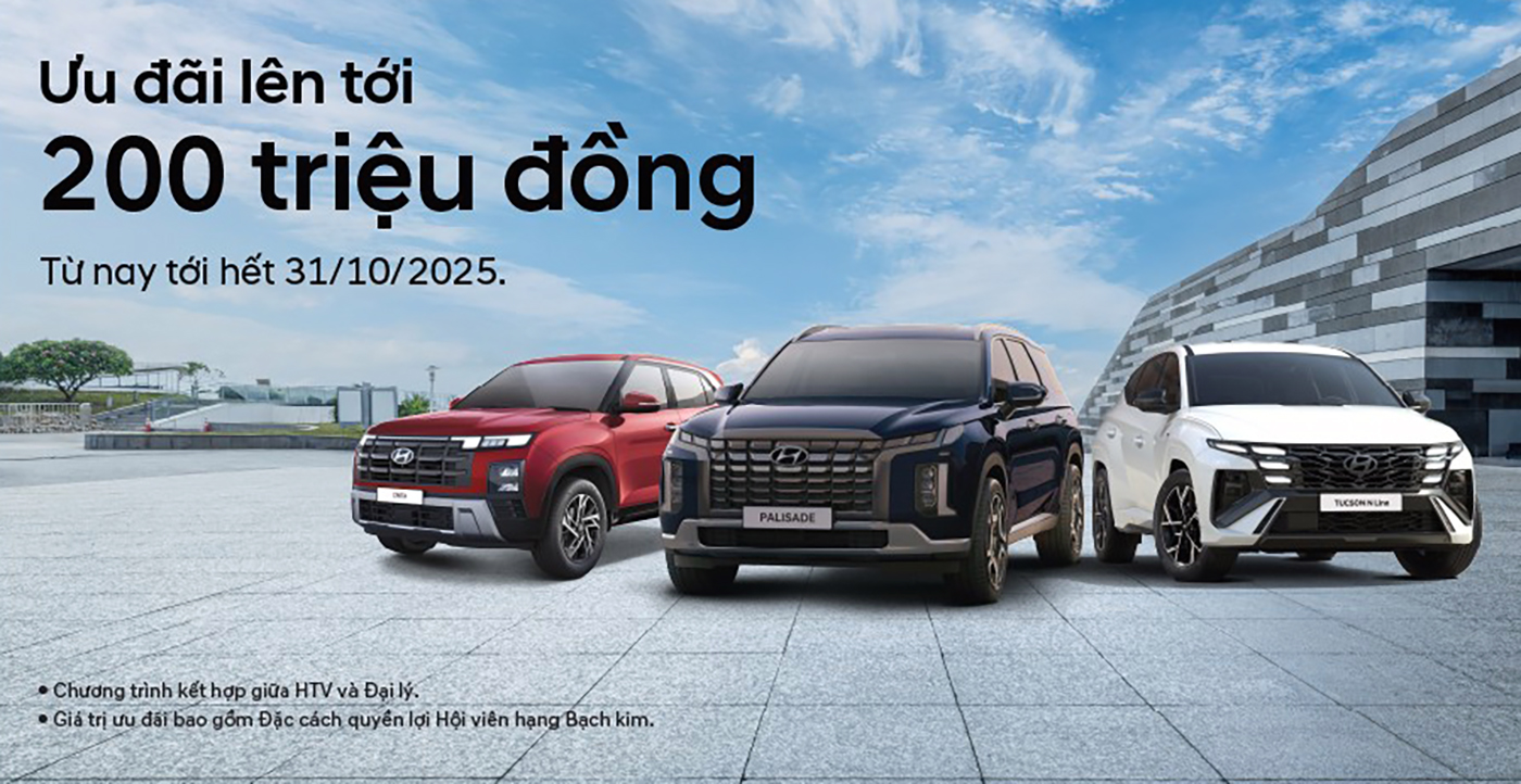 Hyundai Thành Công Việt Nam (HTV) vừa chính thức khởi động chuỗi ưu đãi toàn diện trong tháng 10, tập trung vào việc gia tăng lợi ích và sự an tâm cho khách hàng. Tâm điểm của chương trình là gói “Bảo hành 8 năm – An tâm vận hành” cùng mức hỗ trợ tài chính lên tới 200 triệu đồng cho nhiều dòng xe chủ lực.