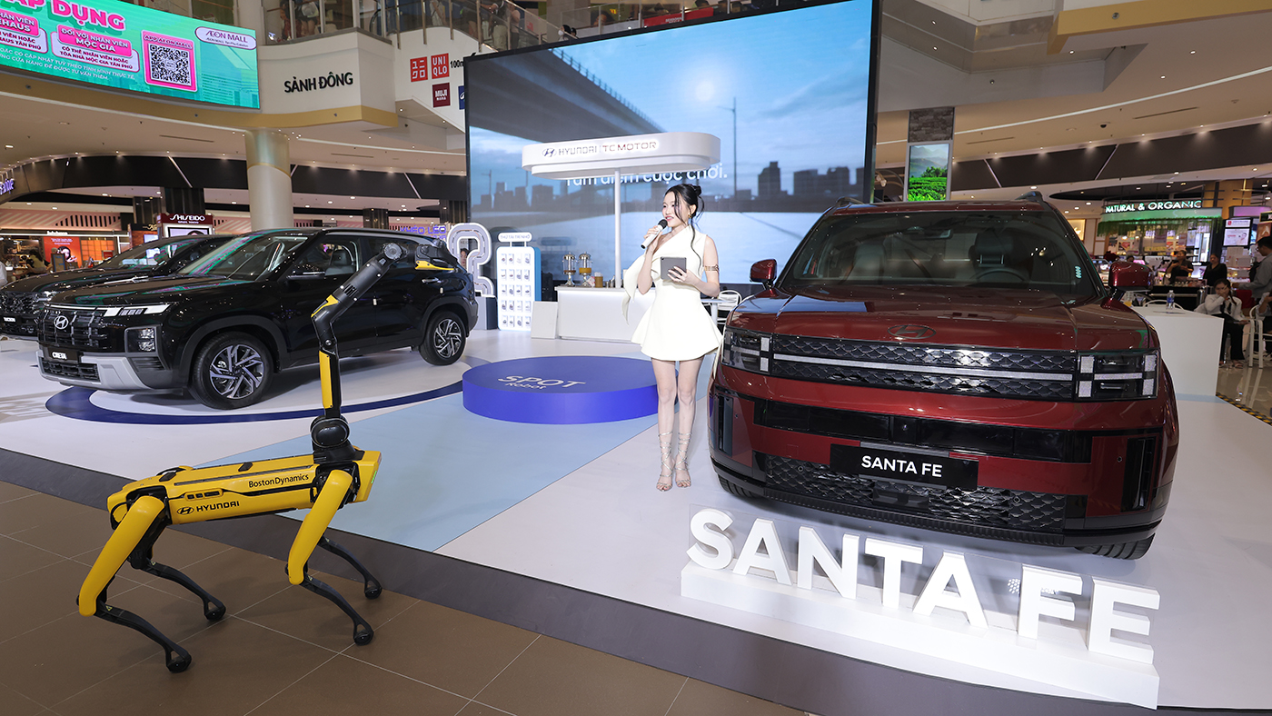 Tiếp tục mang đến cho khách hàng cơ hội trải nghiệm robot Spot (sản phẩm của Boston Dynamics, thuộc Tập đoàn Hyundai Motor Group). Với khả năng di chuyển linh hoạt và tương tác thông minh, Spot được phát triển nhằm hỗ trợ con người trong công việc và đời sống, thể hiện tầm nhìn của Hyundai về công nghệ phục vụ con người và gắn kết cảm xúc.