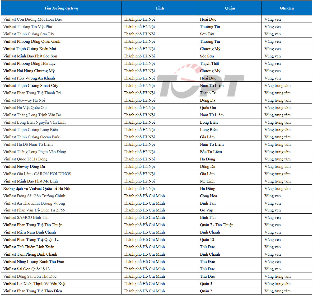 Ngược lại, đơn giá tại các xưởng trung tâm của Hà Nội và TP. Hồ Chí Minh được điều chỉnh tăng lên 400.000 đồng/giờ. Sau thời gian áp dụng chương trình trên, mức giá sẽ quay lại tiêu chuẩn 300.000 đồng/giờ; VinFast cũng lưu ý chương trình không áp dụng với xưởng dịch vụ GSM và chỉ thay đổi đơn giá với hạng mục bảo dưỡng định kỳ.