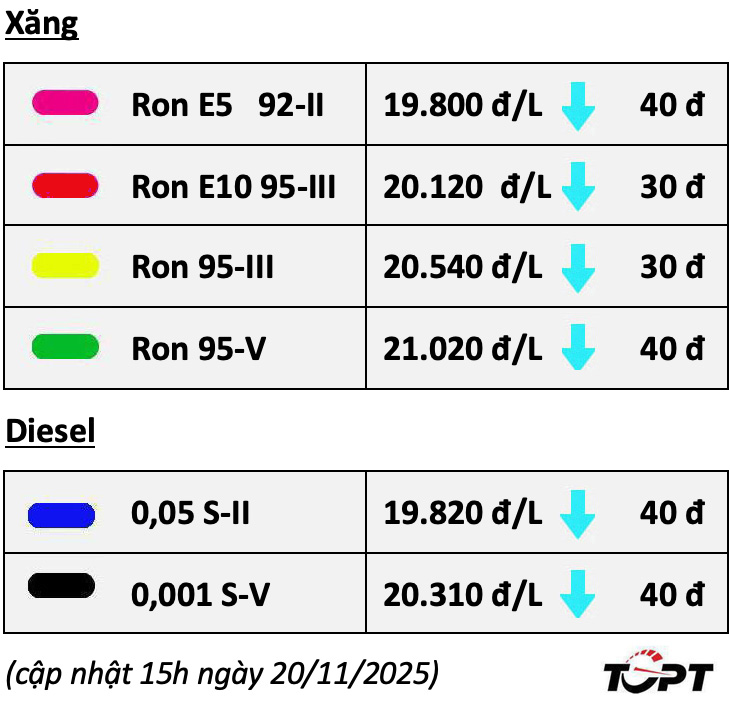 Các mặt hàng xăng dầu phổ thông được điều chỉnh giảm nhẹ trong đợt điều chỉnh tuần này