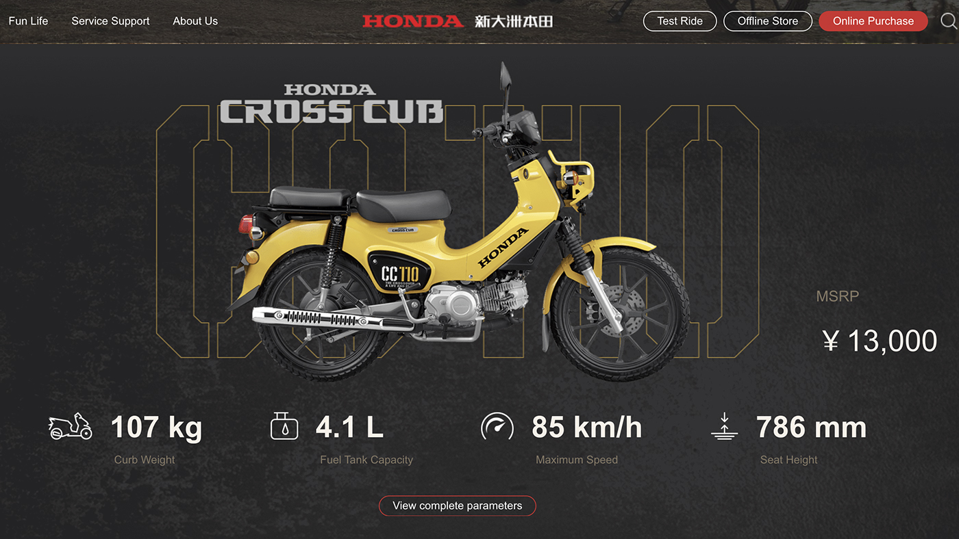 Trong dải sản phẩm của Honda trong khu vực, hiện thương hiệu Nhật Bản này có hai mẫu xe địa hình bao gồm Honda Cross Cub được sản xuất tại liên doanh Honda Sundiro (Trung Quốc) và Honda CT125 (Honda Trail) được sản xuất tại Thái Lan.