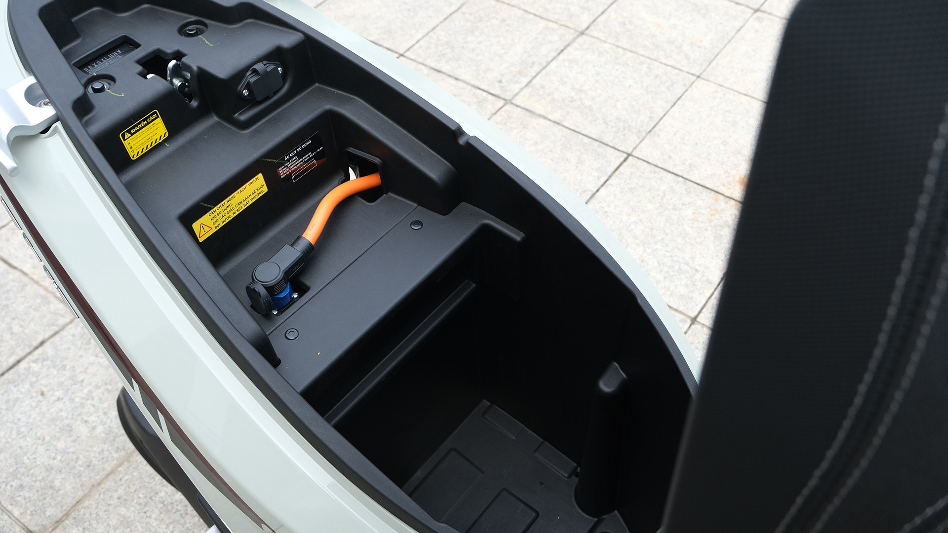 Cốp xe của ba xe máy điện mới có thể gắn thêm pin phụ mở rộng quãng đường di chuyển tối đa lên 262 km.