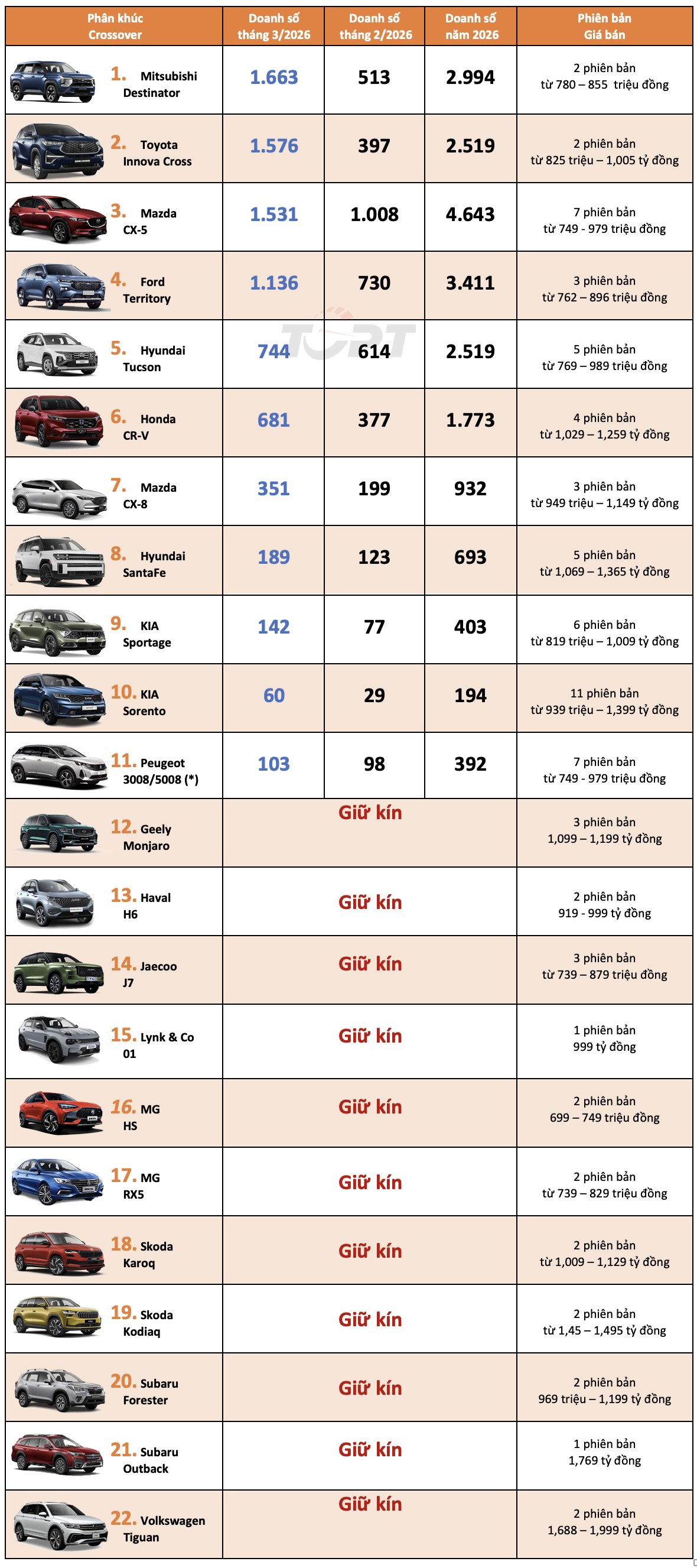 Thị trường ô tô Việt Nam: Phân khúc Crossover tháng 3/2026 - Đủ nguồn cung, Mitsubishi Destinator tiếm ngồi Mazda CX-5