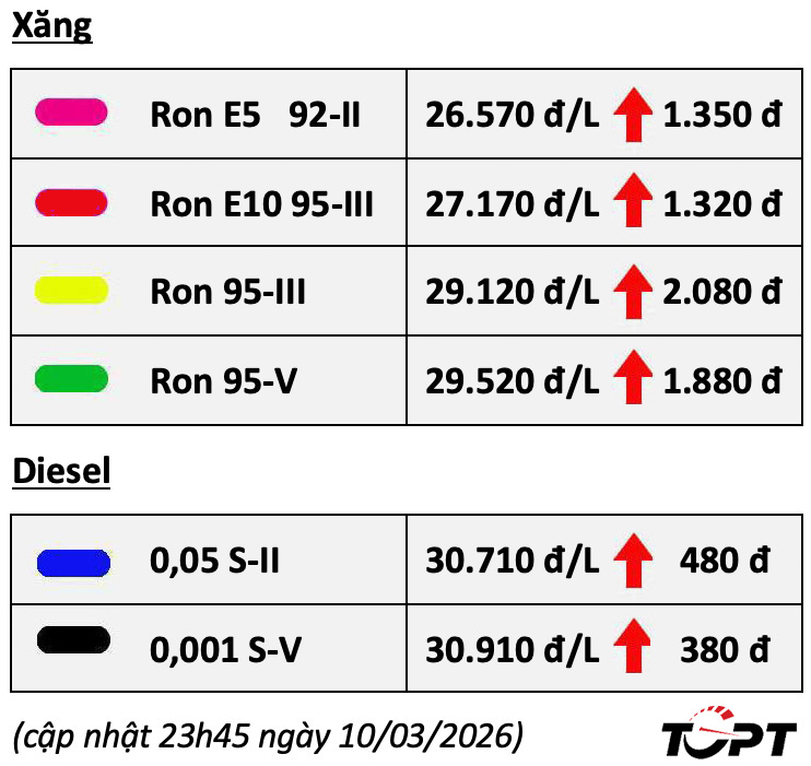 Dầu diesel tăng tới 7.200 đồng/lít và vượt mốc 30.000 đồng/lít, trong khi xăng tăng tới 4.700 đồng/lít.