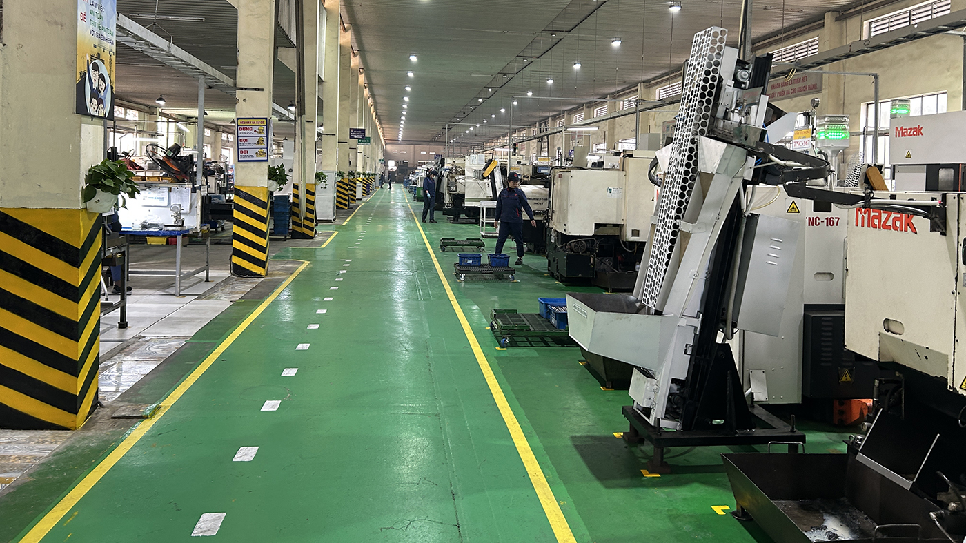 Bên trong nhà máy Cơ khí Phổ Yên sau khi áp dụng các cải tiến trong tổ chức sản xuất.