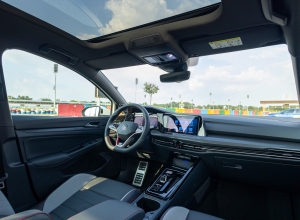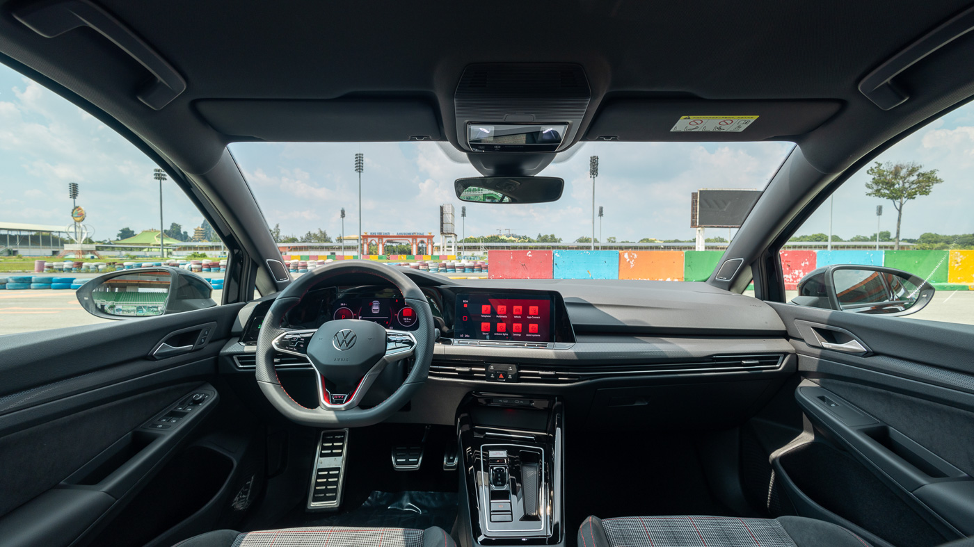Cùng với đó, xe được bổ sung với hệ thống chiếu sáng IQ.Light Matrix LED tự động điều chỉnh vùng chiếu, ghế da cao cấp với viền chỉ đỏ, đèn nội thất 30 màu, cùng với các chi tiết mang đặc trưng GTI bên trong.