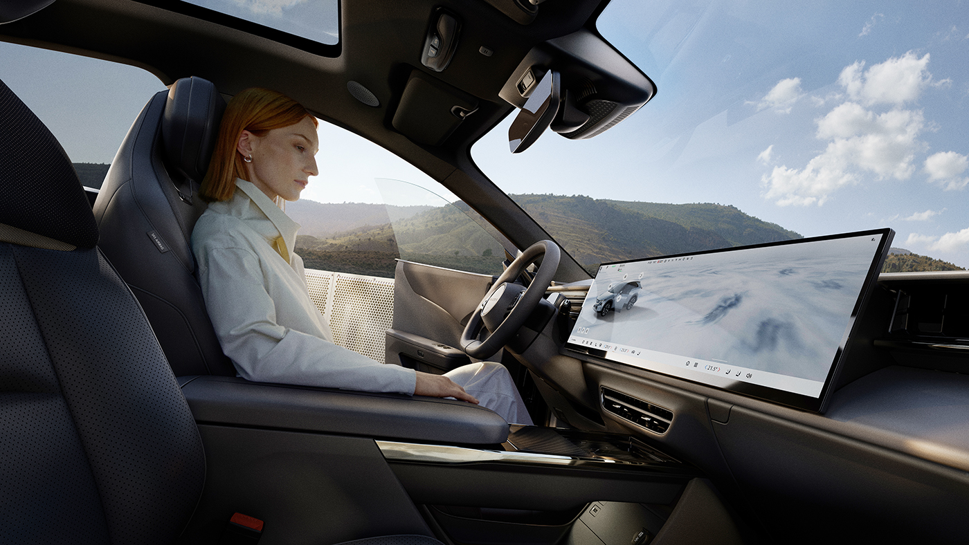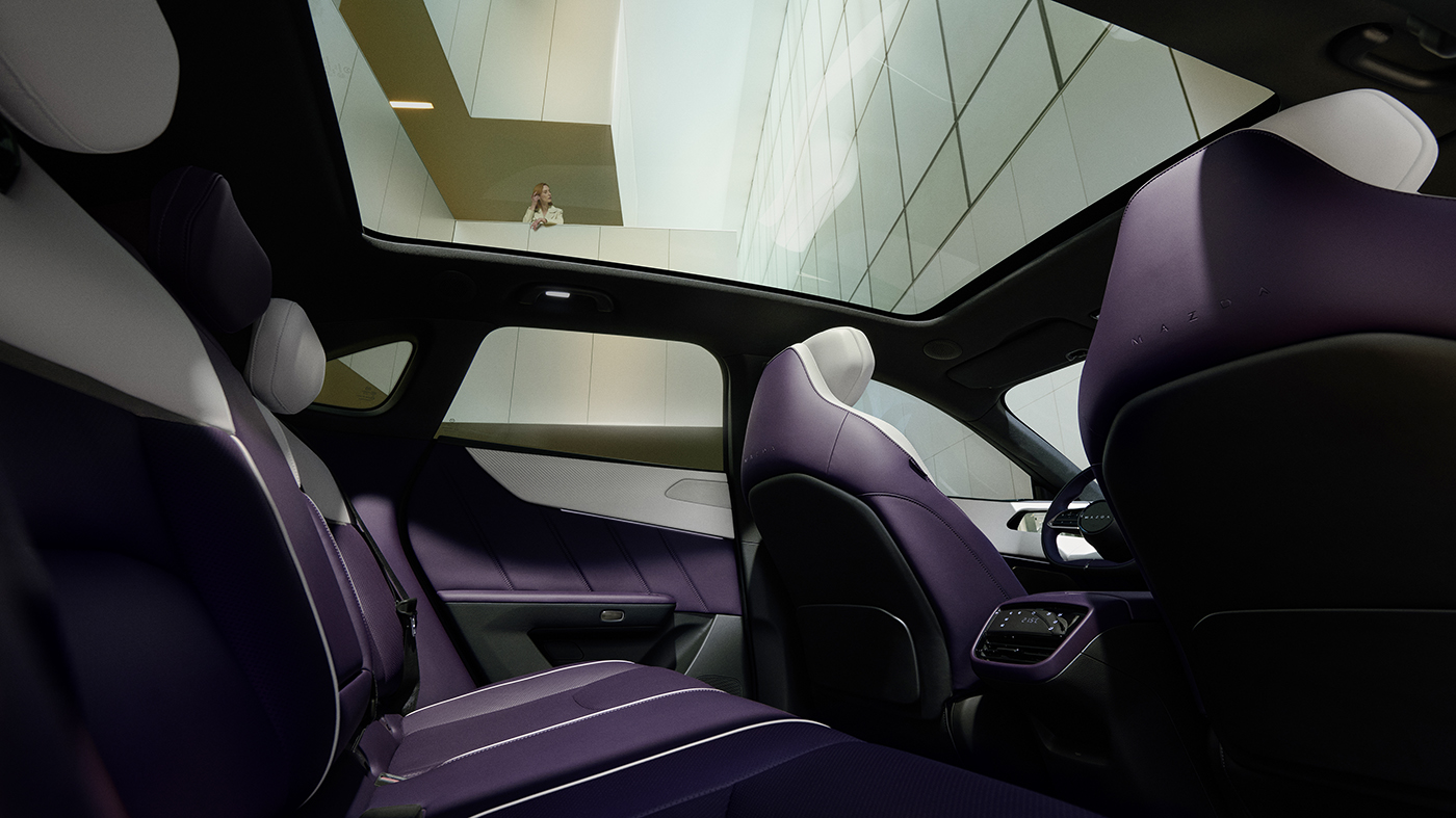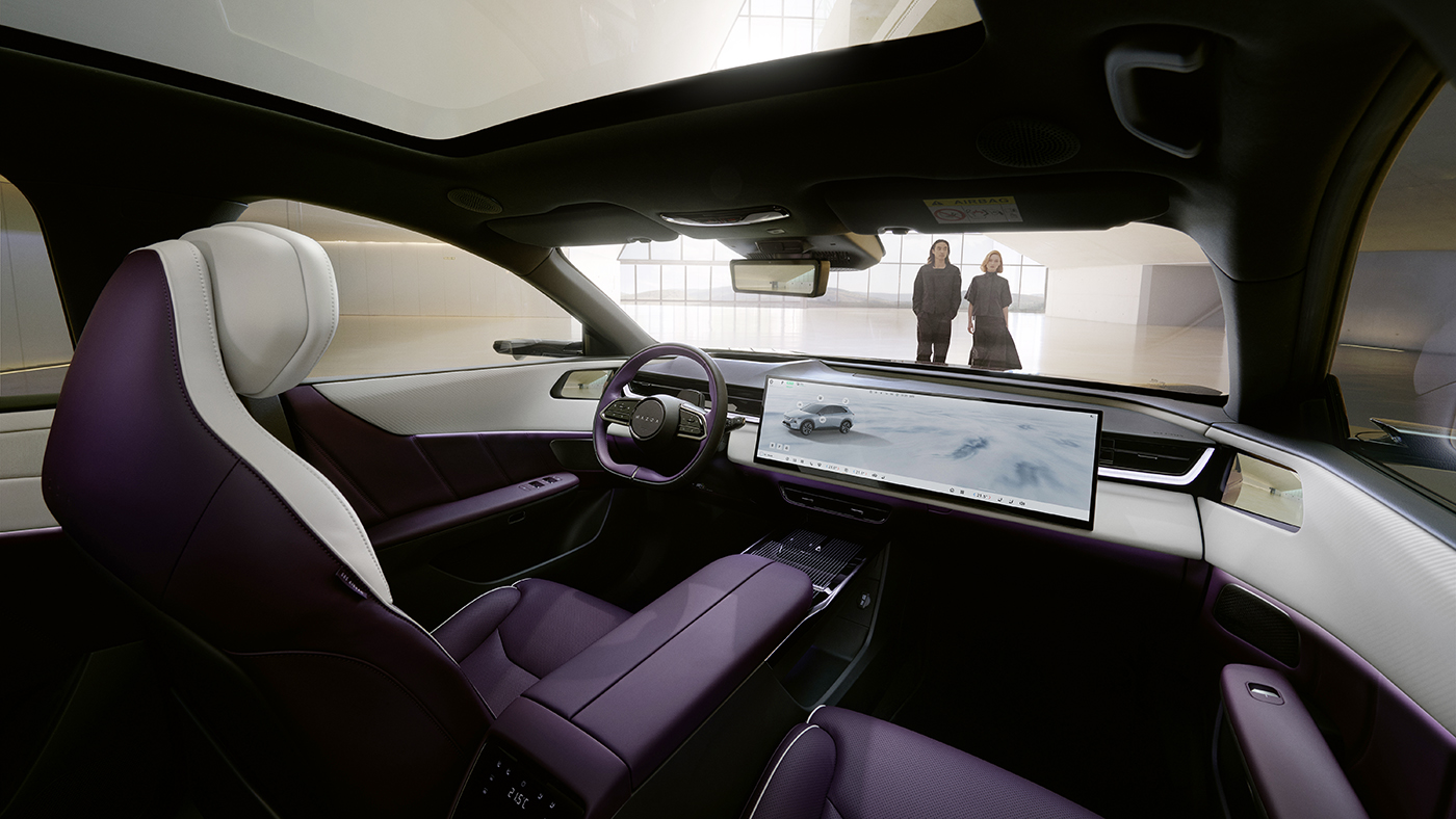 Dấu ấn từ thị trường Trung Quốc thể hiện rõ nhất ở kích thước đồ sộ và các chi tiết kỹ thuật số như lưới tản nhiệt đóng kín có đèn nền, tay nắm cửa ẩn và dải đèn LED sắc sảo. Đặc biệt, hệ thống khí động học gồm 9 hốc gió bố trí quanh xe và cột C kiểu "flying buttress" là những chi tiết tối ưu hóa cho xe điện từ các nhà sản xuất Trung Quốc.