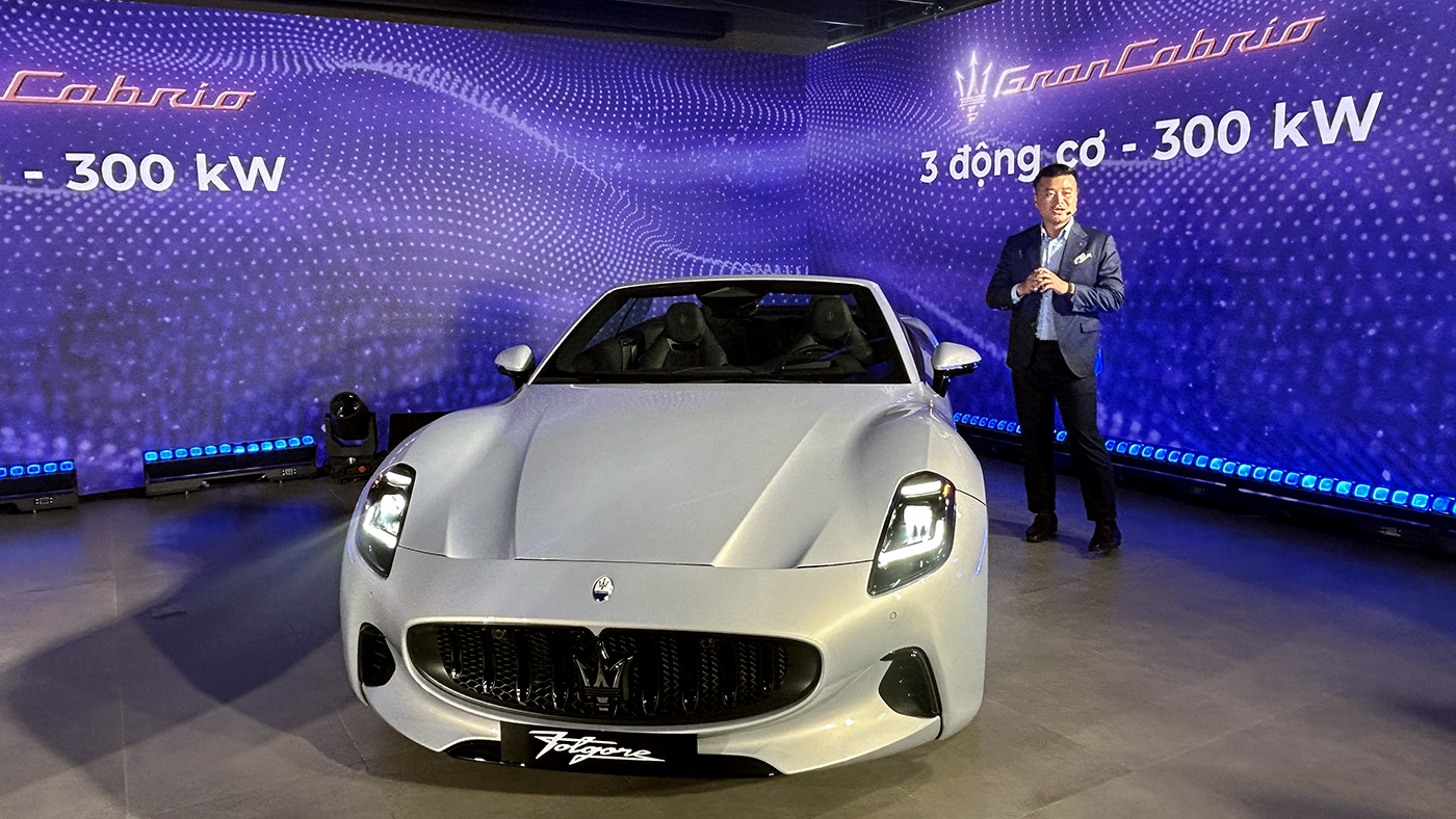 Maserati Việt Nam cùng lúc giới thiệu hai mẫu xe điện, trong đó đáng chú ý có mẫu xe thể thao hai cửa mui mềm GranCabri Folgore với khả năng tăng tốc từ 0 - 100km/h hết 2,8 giây cùng giá bán hơn 13 tỷ đồng