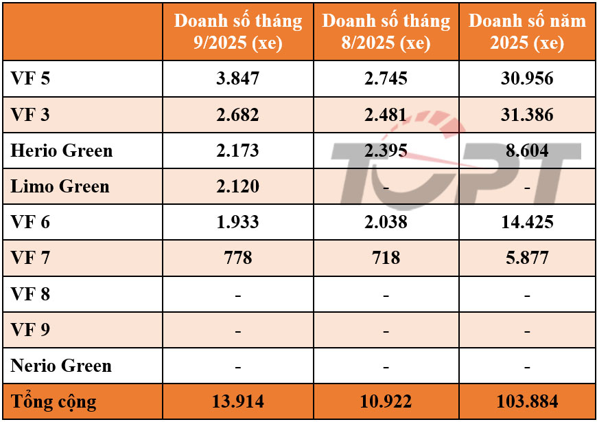 Doanh số ô tô điện VinFast trong tháng 9 và cả năm 2025.