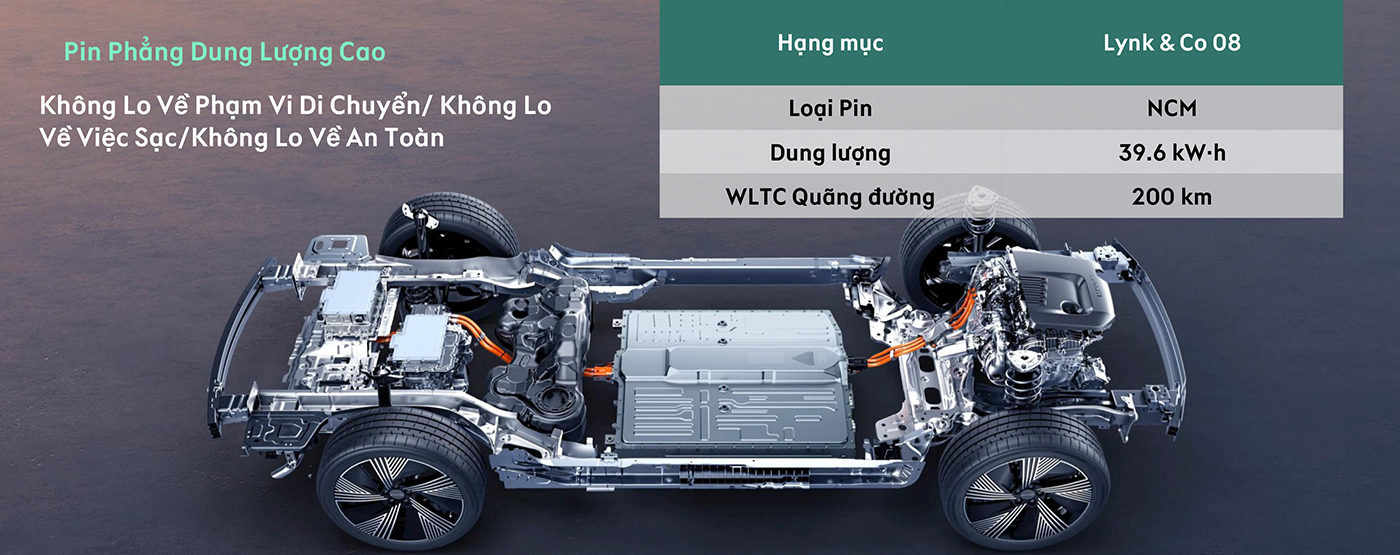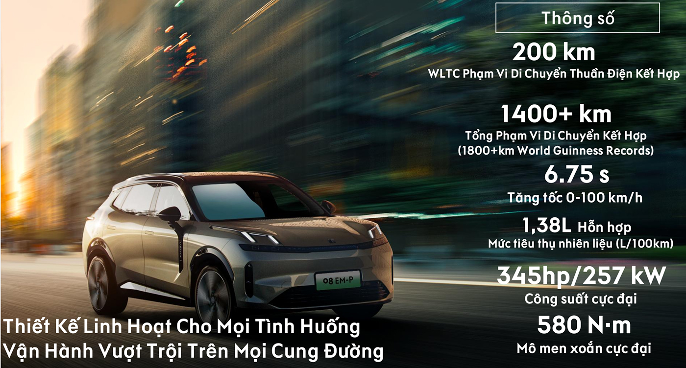 Và chính vì vậy, Lynk & Co cho biết, hệ thống EM-P trên Lynk & Co 08 đã giúp chiếc SUV PHEV này đạt Kỷ lục Guinness Thế giới về khả năng di chuyển xa nhất với một bình xăng (60L) sau khi cắm sạc pin đầy. Quãng đường mà Lynk & Co 08 đạt được là 1.813 km. Ngoài ra cụm pin dung tích 39,6 kWh có khả năng di chuyển thuần điện dài hơn các đối thủ đồng là BYD và Omoda & Jaecoo – và lên tới 200km theo chuẩn WLTP.