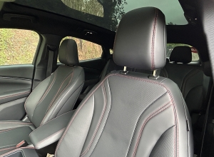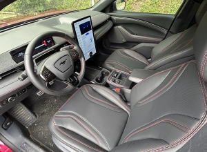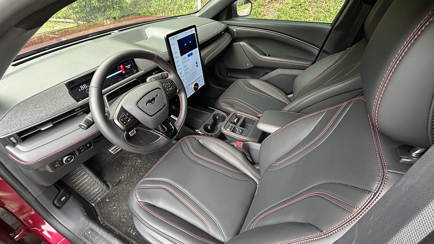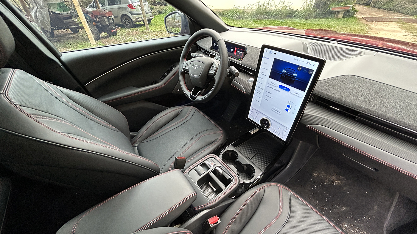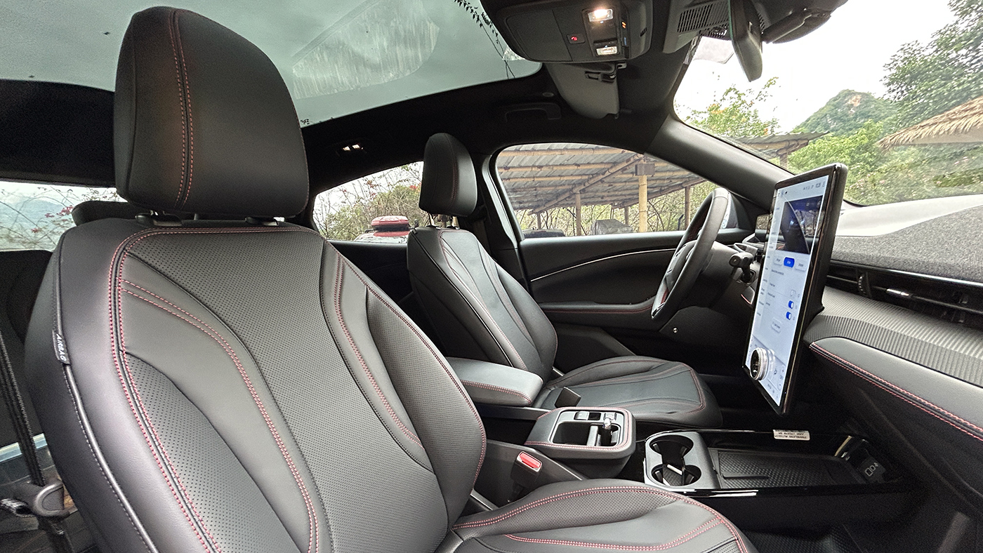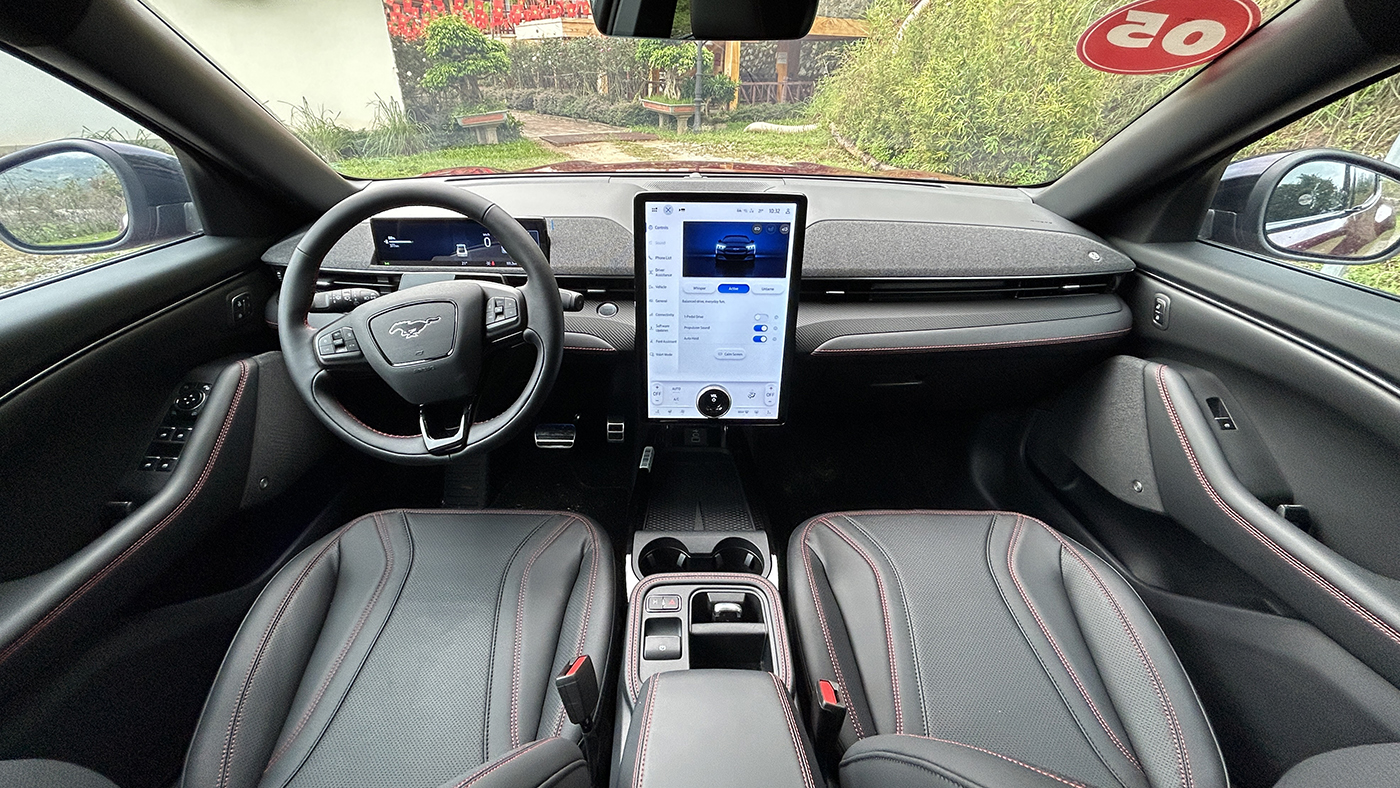 Bên trong, tinh thần Mustang vẫn được duy trì, nhưng tập trung vào sự tối giản và rộng rãi nhờ nền tảng điện. Dù là một chiếc SUV cho năm hành khách, Mach-e vẫn mang lại cảm giác hiện đại và mạnh mẽ xuyên suốt nội thất, từ tùy chọn hệ thống âm thanh cao cấp B&O tích hợp tinh tế cho đến thiết kế cửa sổ trời toàn cảnh cách nhiệt. Các chi tiết nhỏ như cơ chế mở cửa bằng nút nhấn trên trụ B cũng thể hiện sự giao thoa giữa di sản thể thao và công nghệ tương lai.