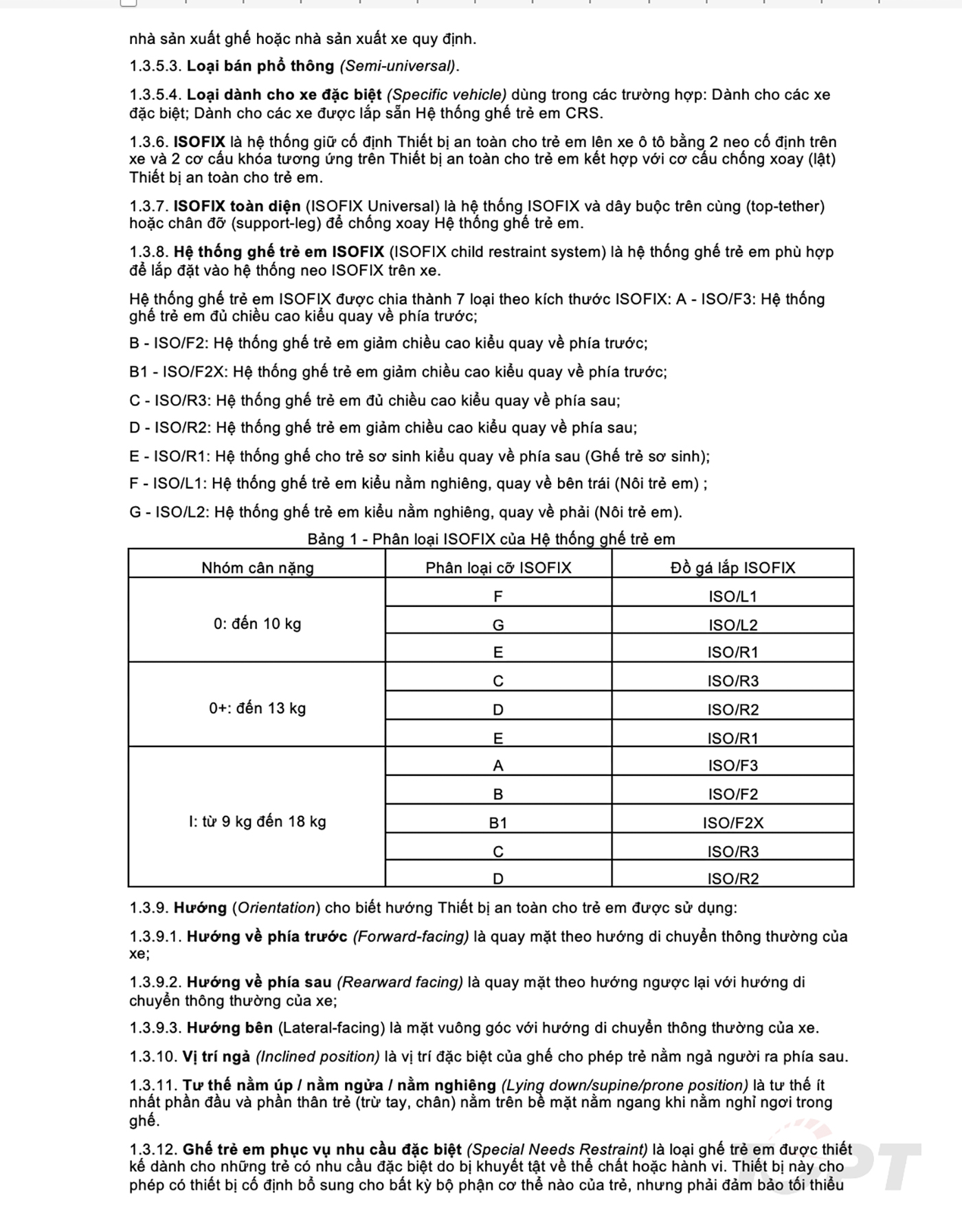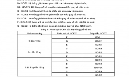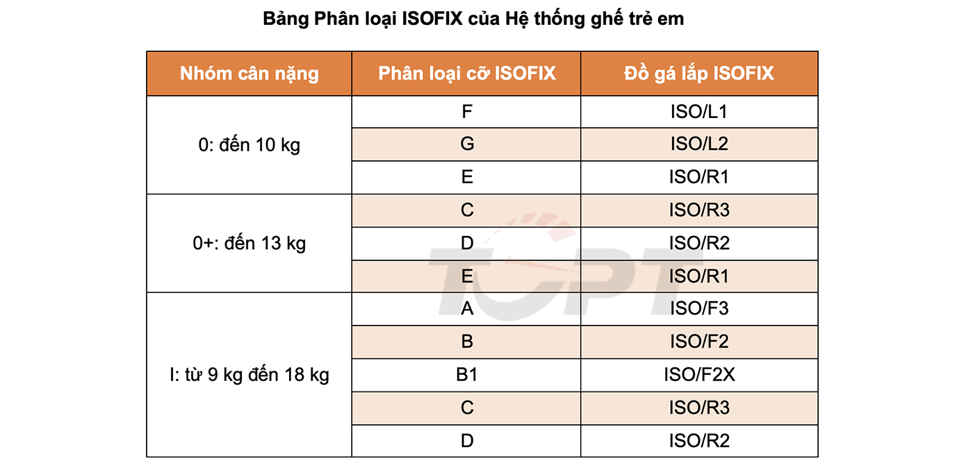 Hệ thống ghế trẻ em ISOFIX (ISOFIX child restraint system) được chia thành 7 loại theo kích thước