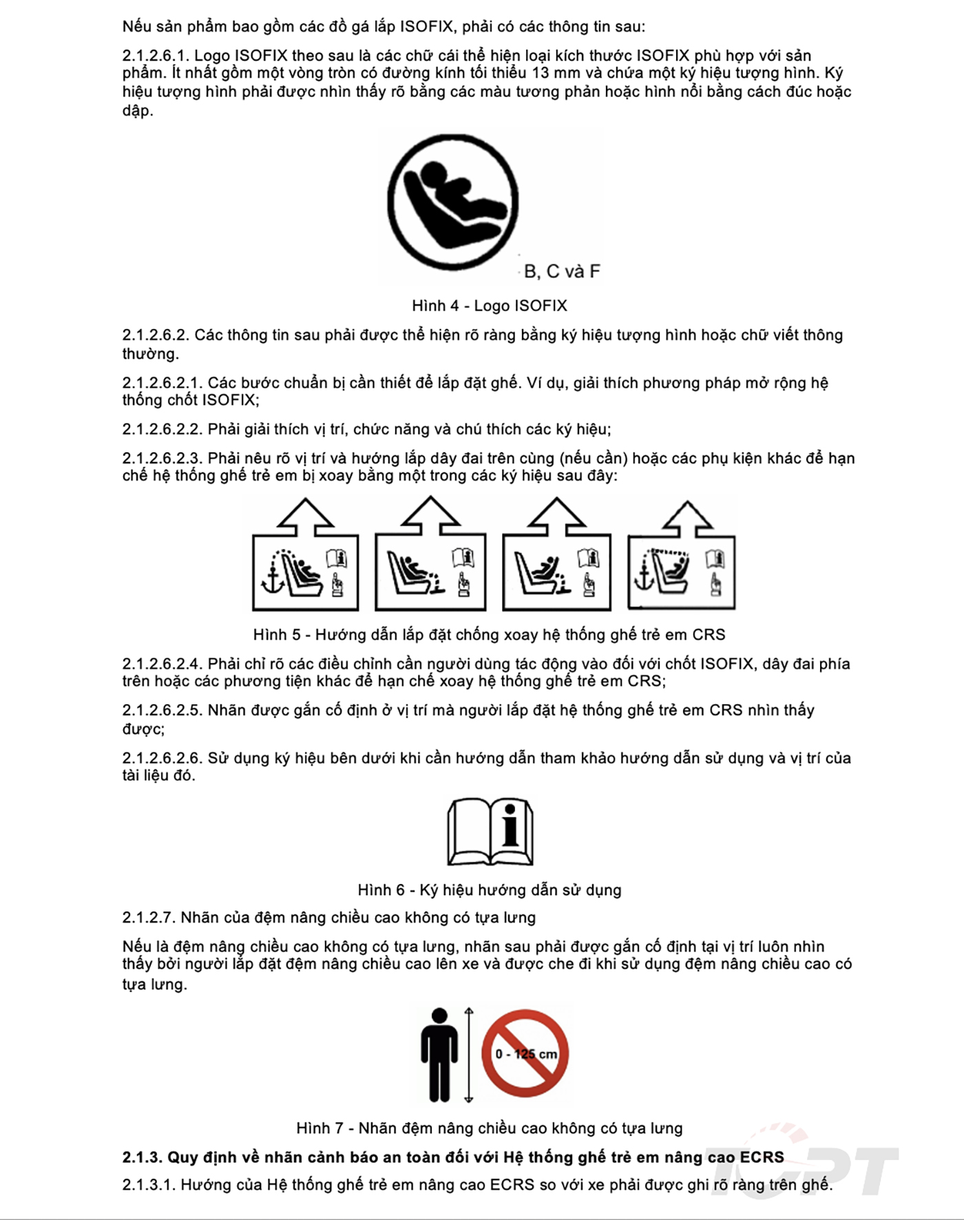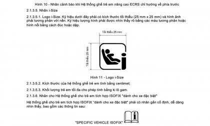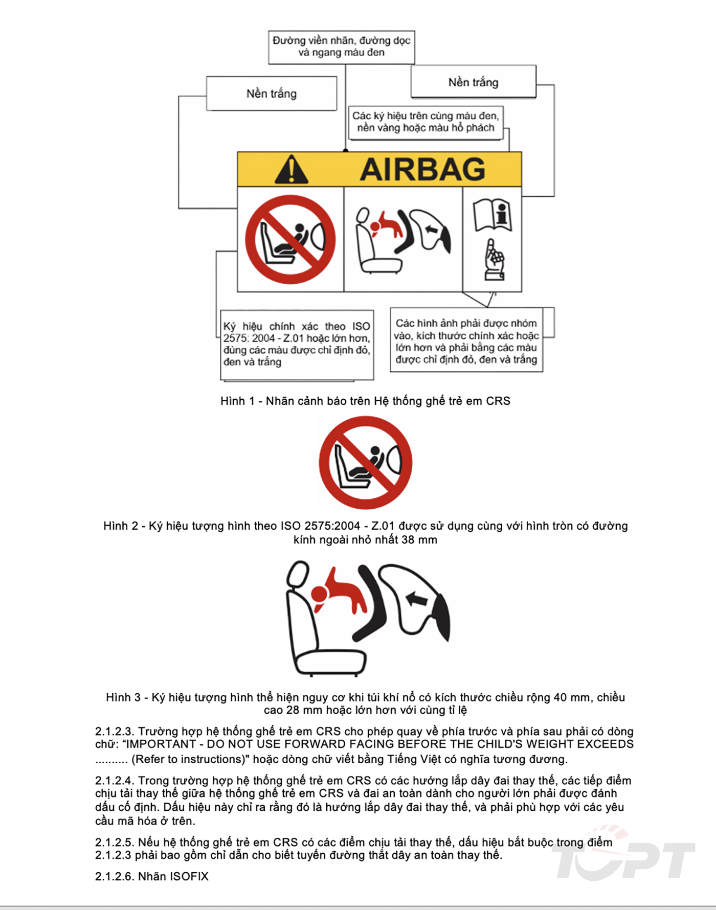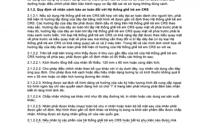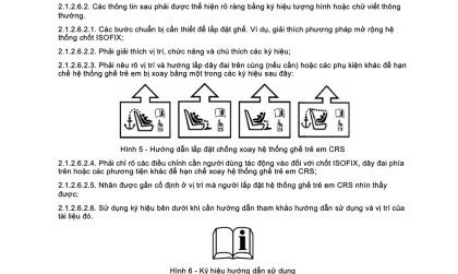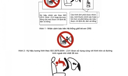 Nếu sử dụng Hệ thống ghế trẻ em CRS kết hợp với dây đai an toàn dành cho người lớn, phải thể hiện rõ hướng lắp đúng của dây đai bằng một hình vẽ được gắn cố định theo Hệ thống ghế trẻ em CRS.