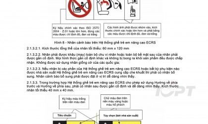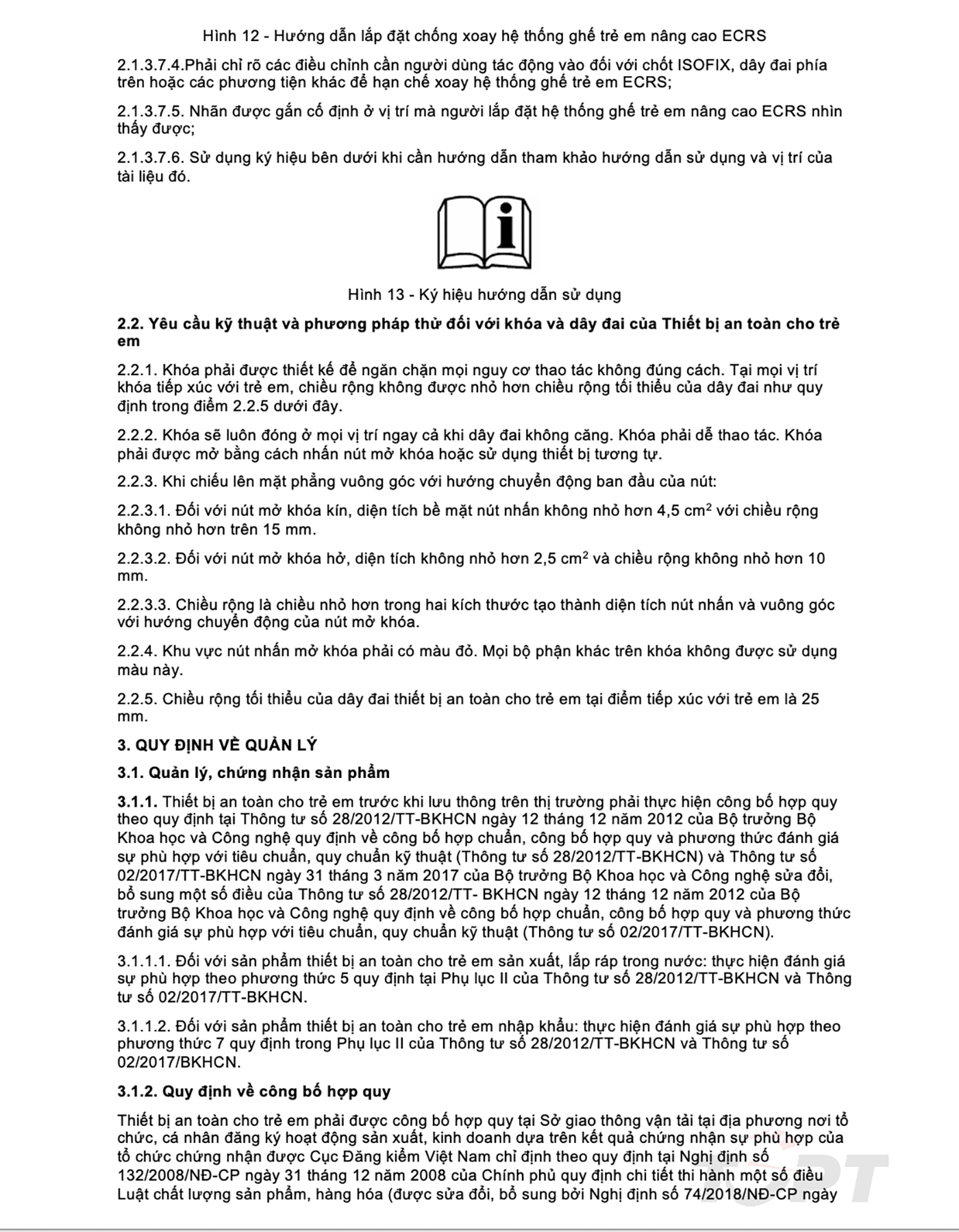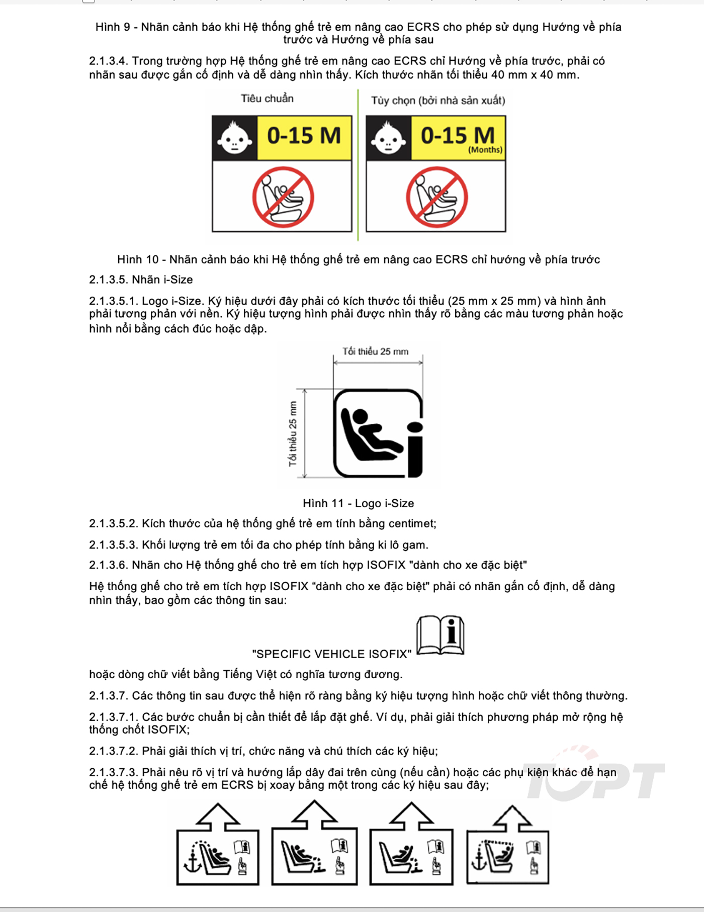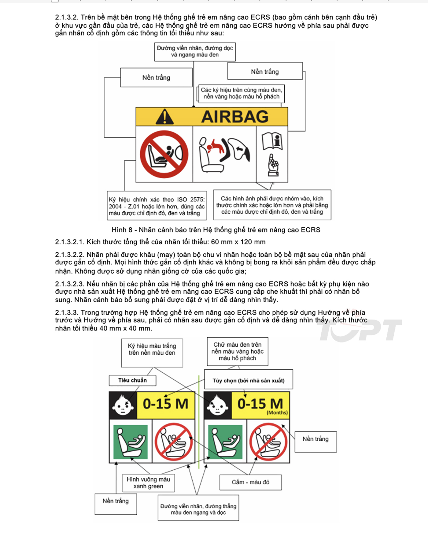Nếu sử dụng Hệ thống ghế trẻ em CRS kết hợp với dây đai an toàn dành cho người lớn, phải thể hiện rõ hướng lắp đúng của dây đai bằng một hình vẽ được gắn cố định theo Hệ thống ghế trẻ em CRS.