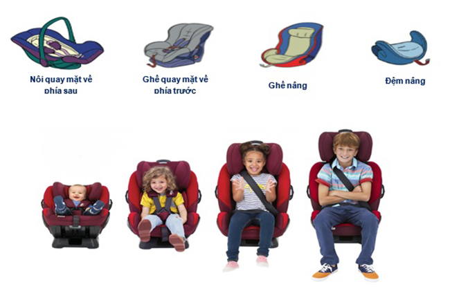 Các loại ghế an toàn dành cho trẻ em được theo từng lứa tuổi