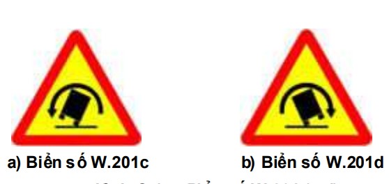 - Biển số W.201c chỗ ngoặt nguy hiểm có nguy cơ lật xe bên phải khi đường cong vòng sang trái;