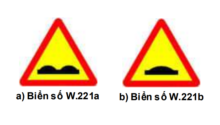 - Để báo trước sắp tới đoạn đường có mặt đường không bằng phẳng, lồi lõm, v.v. .. xe chạy với tốc độ cao sẽ nguy hiểm, đặt biển số W.221 (a,b):