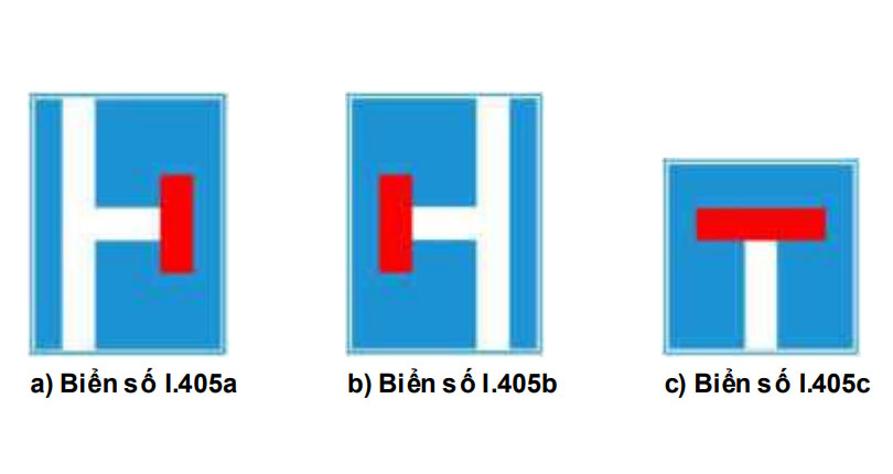 - Biển số I.405c để chỉ dẫn phía trước là đường cụt. Biển này đặt trước đường cụt 300 m đến 500 m và cứ 100 m phải đặt thêm một biển.