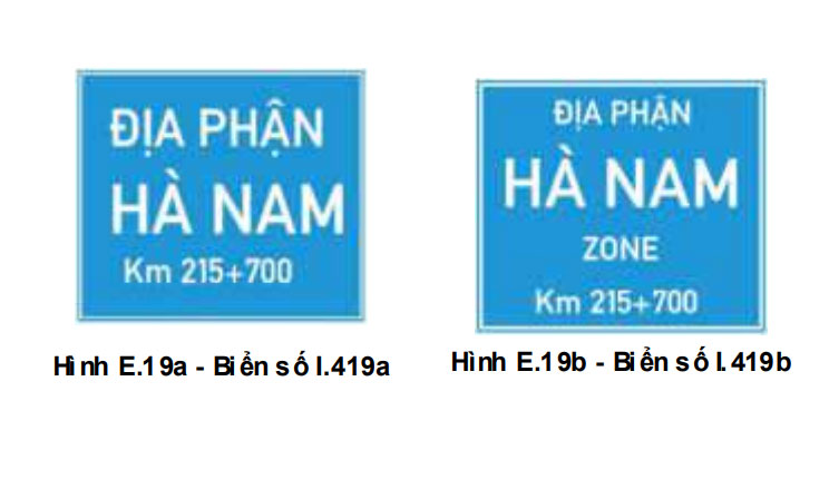 - Lý trình ghi trên biển số I.419(a,b) "Chỉ dẫn địa giới" được làm tròn đến mét.