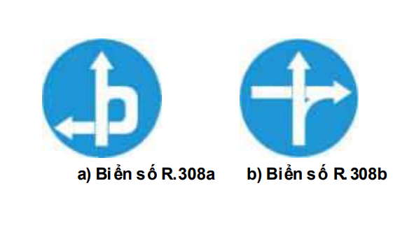 Biển số R.308 dùng để: Biểu thị phía trước có cầu vượt, xe có thể đi thẳng hoặc theo chỉ dẫn trên hình vẽ để rẽ trái (hay rẽ phải), đặt ...