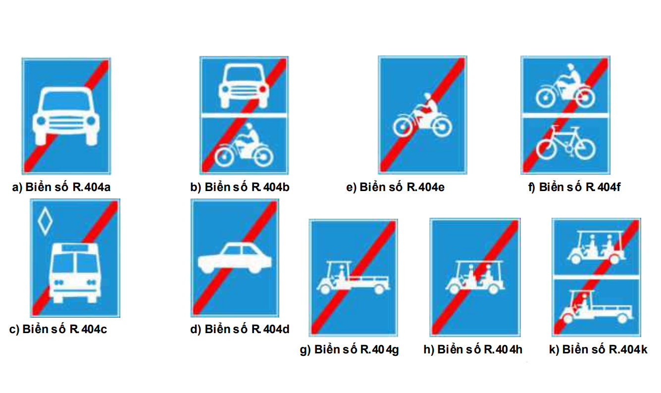 - R. 404h “Hết đoạn đường dành cho xe chở người bốn bánh gắn động cơ”.