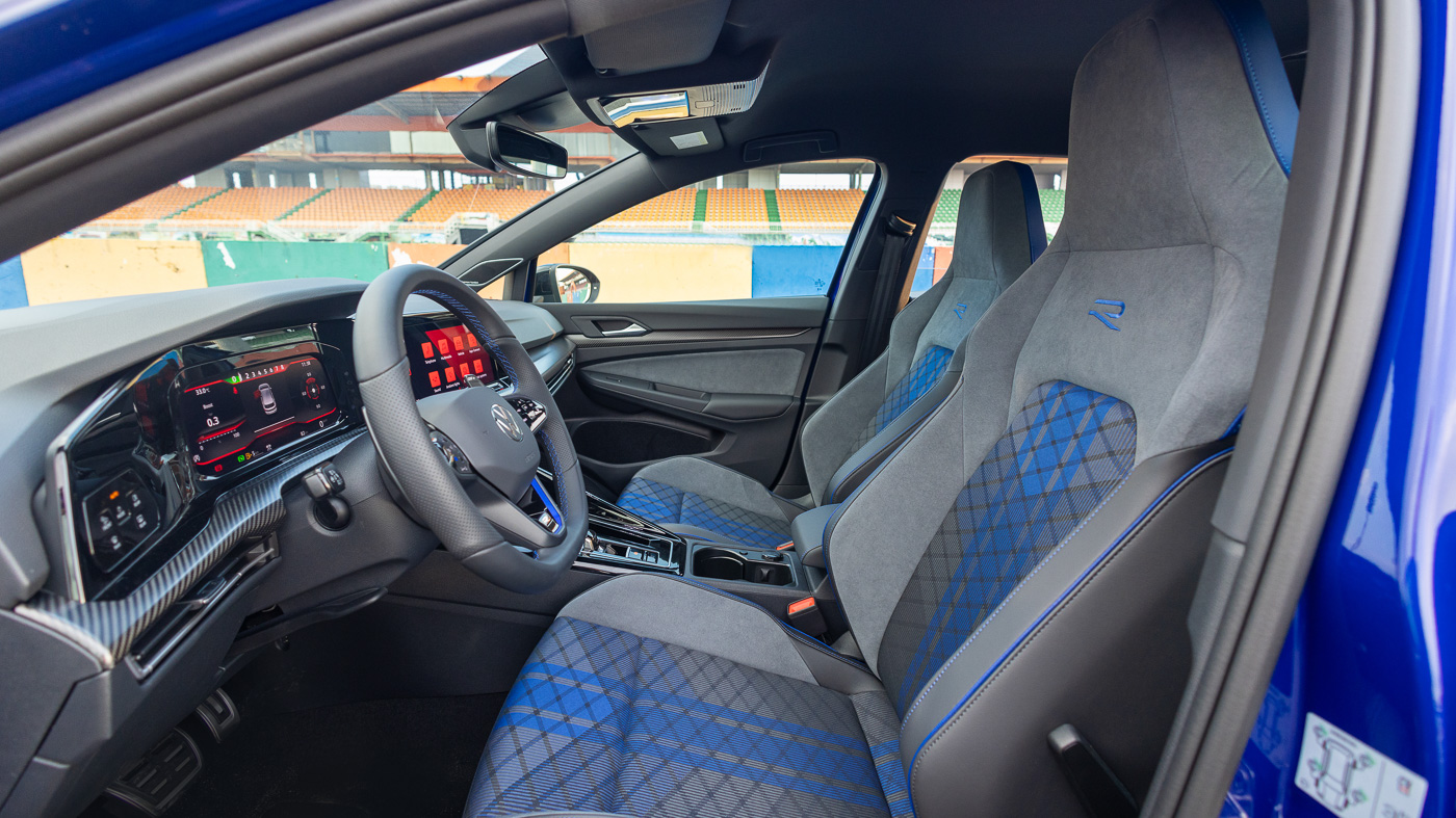 Cuối cùng, Volkswagen Golf R là một mẫu xe thể thao thuần chủng nên đã giảm bớt một số tiện ích ở ghế ngồi và tăng cường khả năng tiện dụng trong quá trình lái, điển hình là lẫy chuyển số...