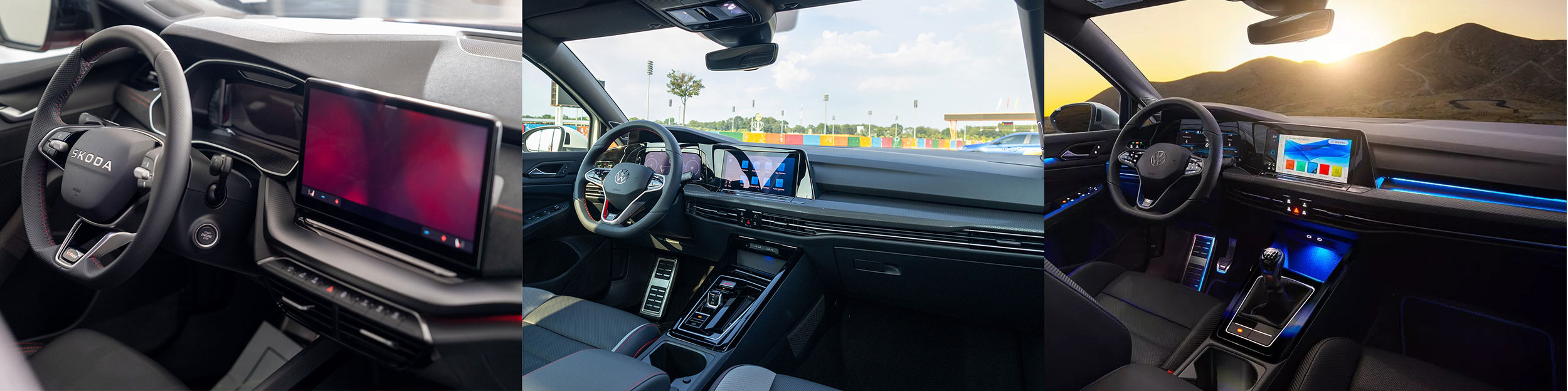 Khoang nội thất của mẫu sedan Skoda trang bị ghế bọc da Alcantara với nhiều tiện ích cho cả ghế phụ, cùng với màn hình giải trí 13 inch và hệ thống âm thanh 12 loa rất nổi bật. Trong khi đó, Volkswagen Golf GTI Performance tập trung tiện ích nhiều vào ghế lái, cùng với điều hòa tự động 3 vùng và đặc biệt là khả năng điều khiển bằng cử chỉ và giọng nói.