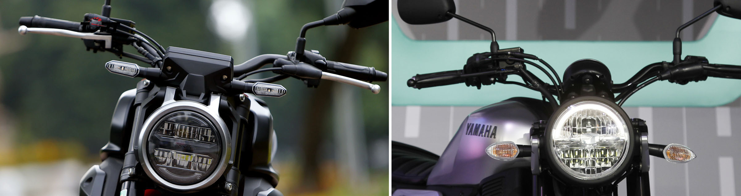 Cả hai mẫu xe đều được trang bị đèn pha tròn full led. Thiết kế cụm đèn báo rẽ có vị trí khá khác biệt, ngoài ra cụm đèn báo rẽ của Honda CB150R vẫn dùng đèn led trong khi với Yamaha là đèn halogen