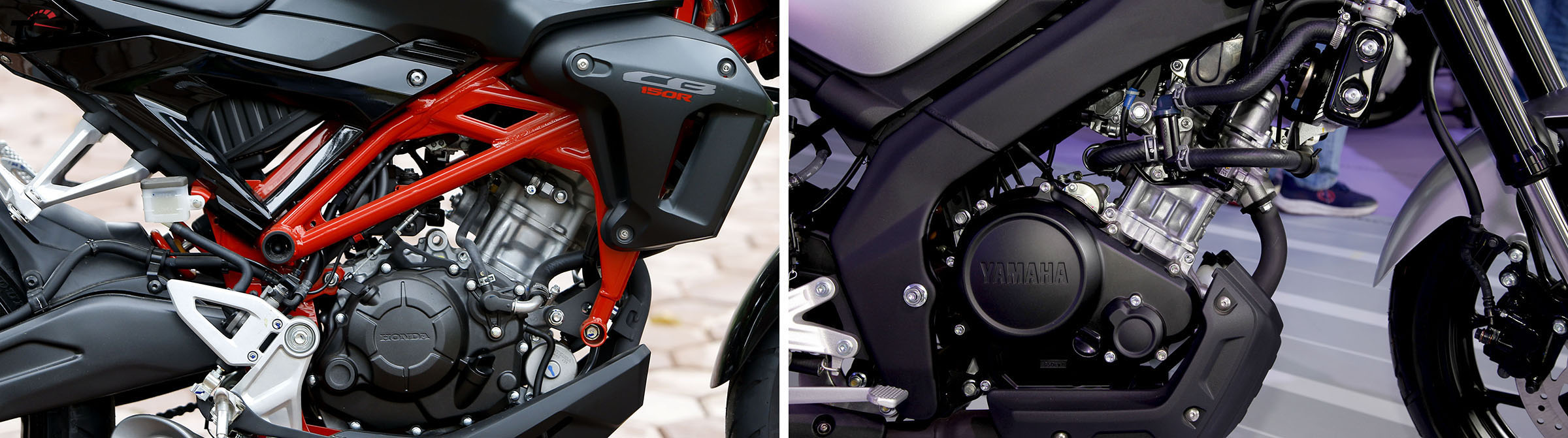 Cả Honda CB150R Streetster và Yamaha XS155R đều sử dụng động cơ xylanh đơn, phun xăng điện tử và làm mát bằng dung dịch. Trong khi hai hãng đều có ứng dụng công nghệ riêng cho piston để giảm ma sát, tăng hiệu suất động cơ (với Honda là lớp tráng lớp Molypden còn với Yamaha là công nghệ nhôm đúc Diasil). Tuy nhiên hàm lượng công nghệ của Yamaha cao hơn khi có thêm hệ thống van biến thiên VVA và đặc biệt là có thêm hệ thống ly hợp trợ lực và chống trượt (A&S - Assist and Slipper).
