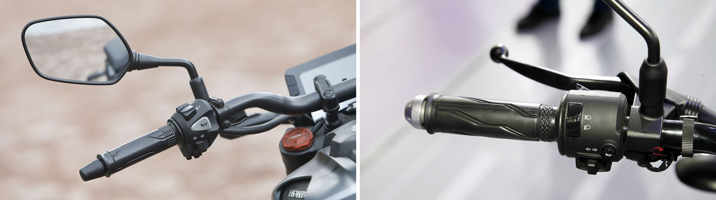 Yamaha XS155R dùng dây ga đôi (kéo/hồi) cao cấp hơn so với dây ga đơn trên Honda CB150R, ngoài ra thiết kế nút khởi động trên mẫu xe Yamaha cũng được thiết kế lại, bớt nhàm chán hơn đối thủ Honda.