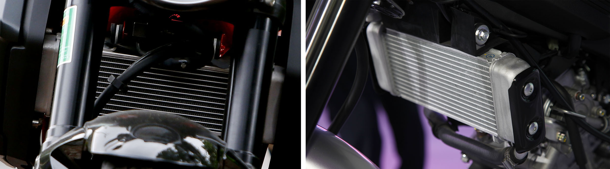Thiết kế "trần trụi" của kết giải nhiệt động cơ của hai mẫu Honda và Yamaha, chi tiết sẽ khiến người dùng tìm cách bảo vệ trước bụi đất trong điều kiện đường sá tại Việt Nam