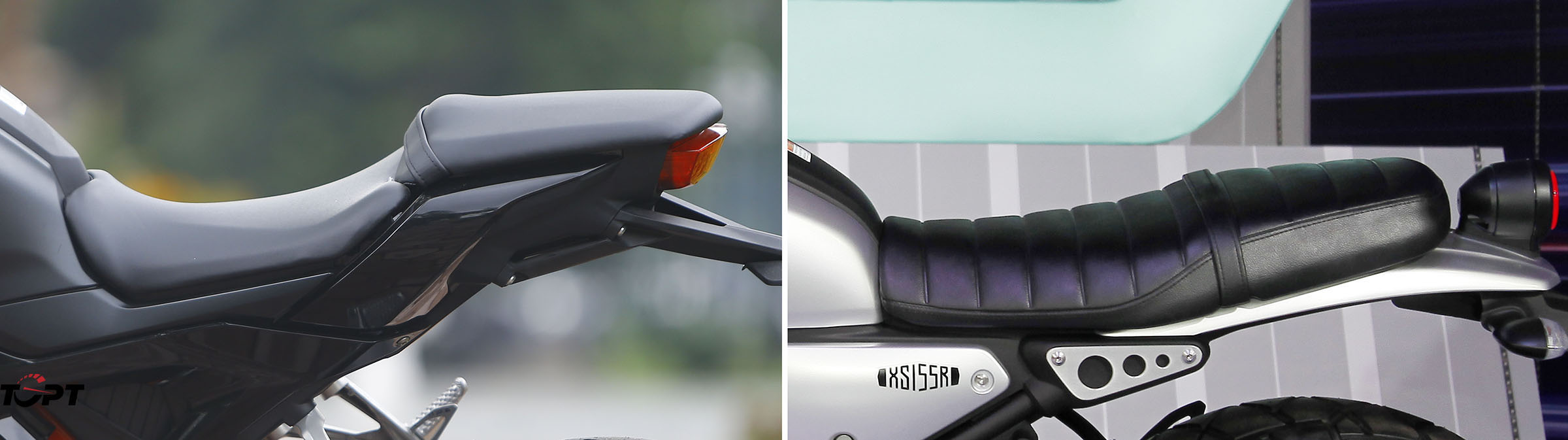 Về thiết kế cụm yên đôi, Honda CB150R lựa chọn "tốc độ" là yếu tố tiên quyết (dù là động cơ nhỏ) nên có thiết kế yên sau dổ về phía trước, tăng khả năng cắt gió để tối ưu sức mạnh động cơ. Trong khi đó Yamaha XS155R có yên sau khá bằng phẳng, cho tư thế ngồi thoải mái và phù hợp với phong cách classic hơn.