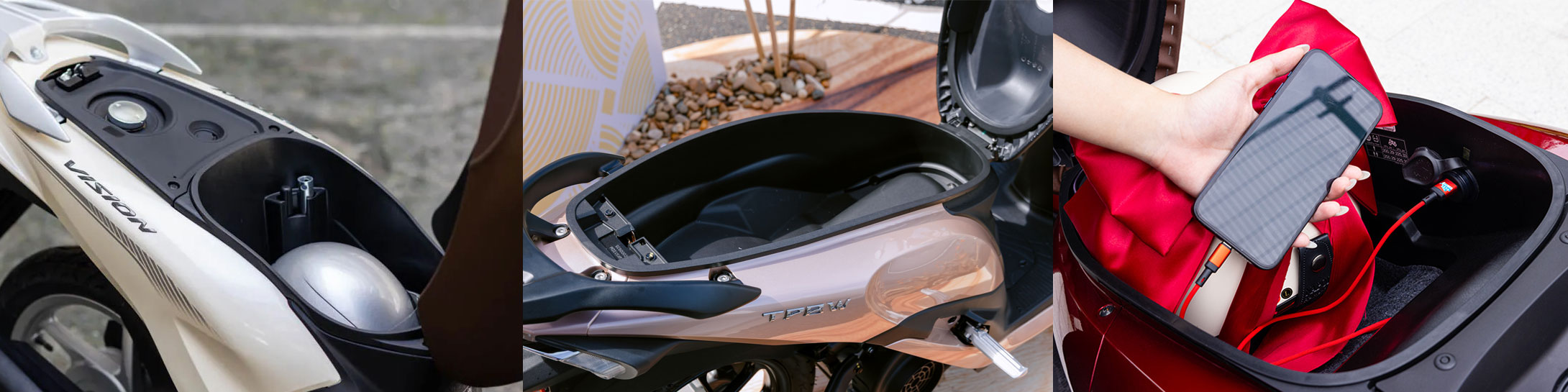 Trong khi đó, Honda Vision được trang bị ổ cắm USB dạng Type C hiện đại hơn, Yamaha Janus không sở hữu quá nhiều tiện ích nổi bật như hai đối thủ với dung tích cốp xe nhỏ cùng cổng USB Type A và đồng hồ dạng Analog kết hợp LCD đơn sắc.