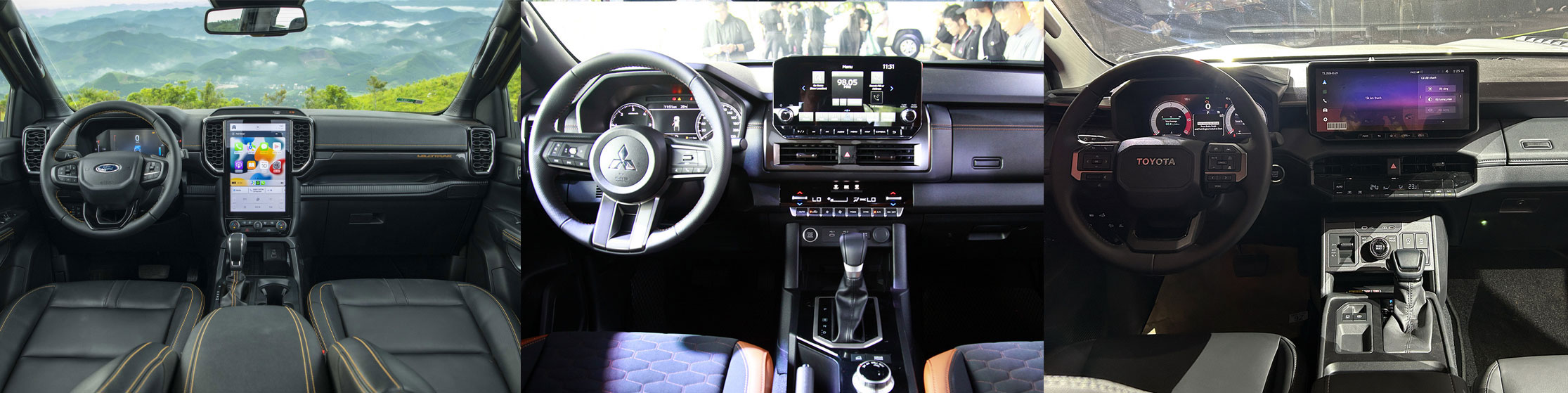 Bù lại, Ford Ranger tập trung vào sự an toàn trong vận hành ổn định với tính năng kiểm soát chống lật xe khá đáng chú ý trong phân khúc này. Cùng với đó, cả ba xe bán tải đang tạo được ấn tượng tốt khi đều có cảm biến hỗ trợ đỗ xe, camera 360 độ và 7 túi khí.