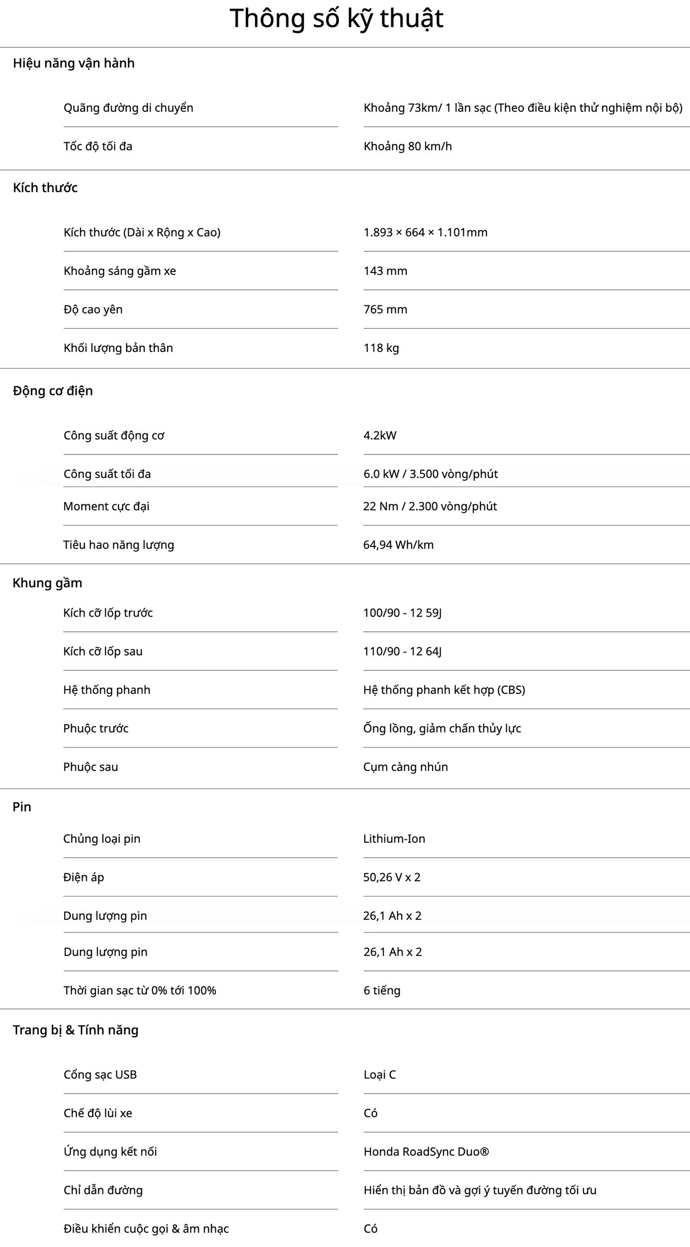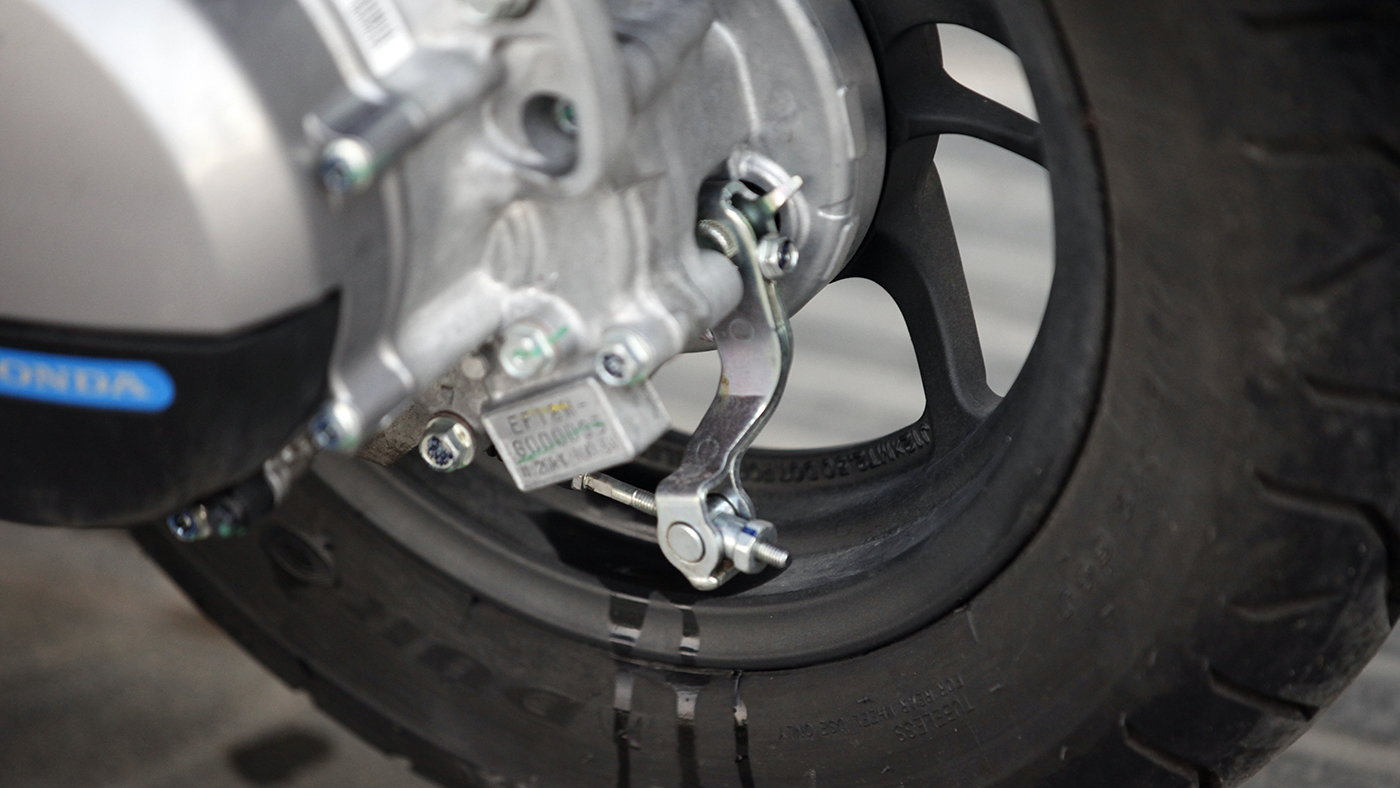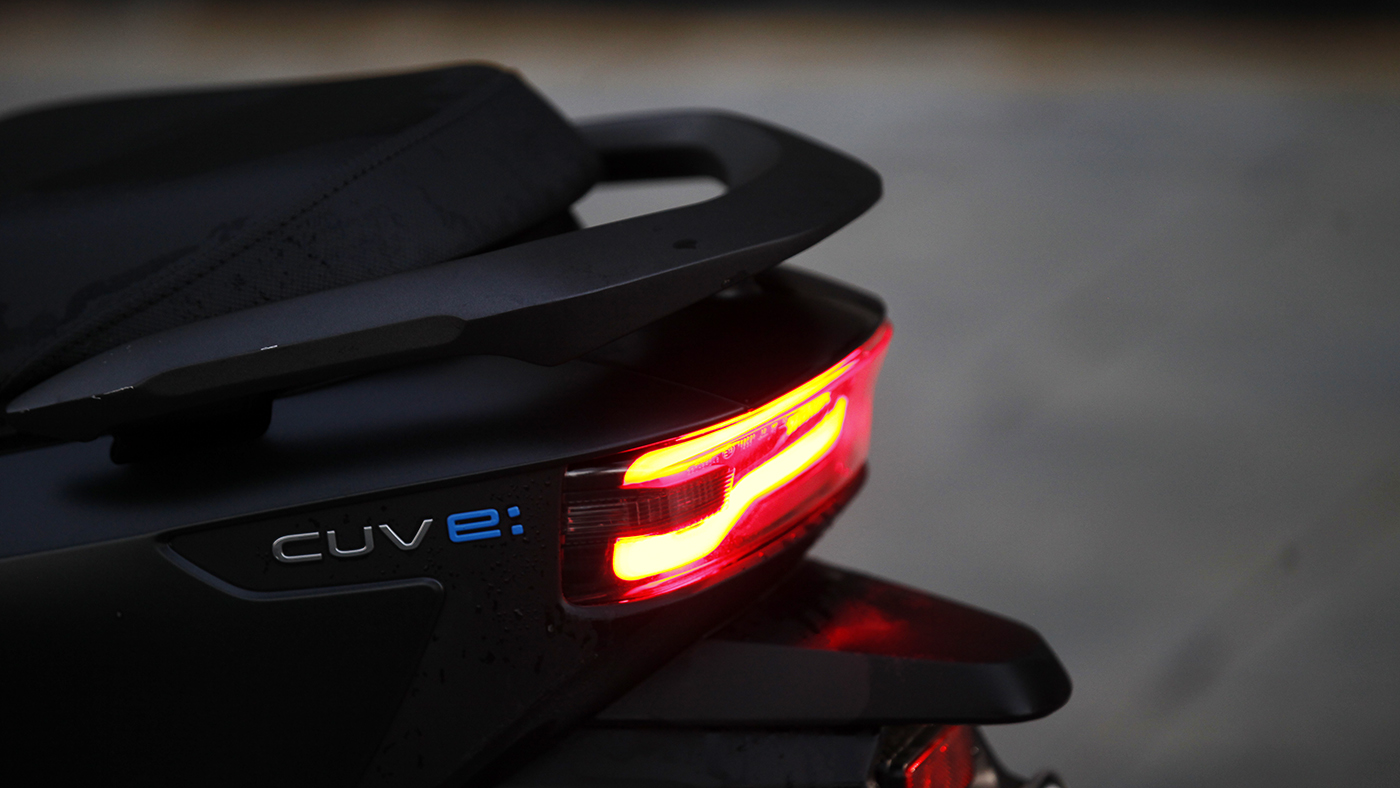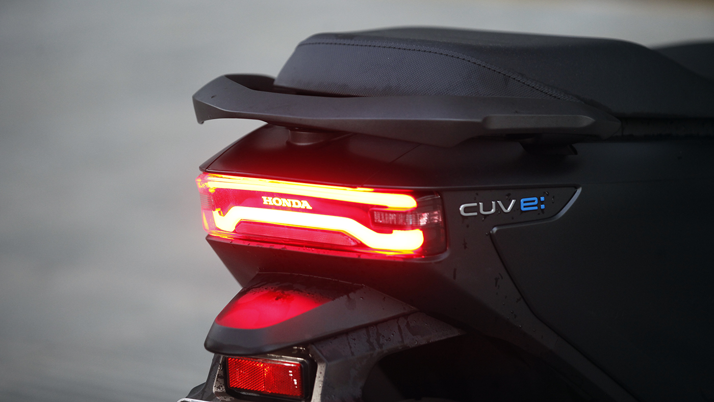 Một chi tiết thiết kế đáng quan tâm; trên cả hai phanh của CUV e:, Honda đều đặt hệ thống tự ngắt động lực của động cơ ngay khi người lái bóp phanh, giúp chiếc xe phát huy tốt nhất hiệu quả của hệ thống hãm – tất nhiên sẽ khác biệt nhiều so với thói quen cầm lái của xe máy chạy xăng (duy trì vòng tua máy cao để có lực kéo tốt nhất).