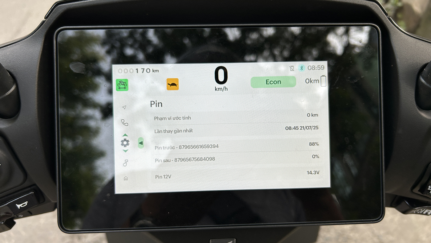 Khi dung lượng pin còn dưới 20% thì xe không cho vận hành ở chế độ Sport