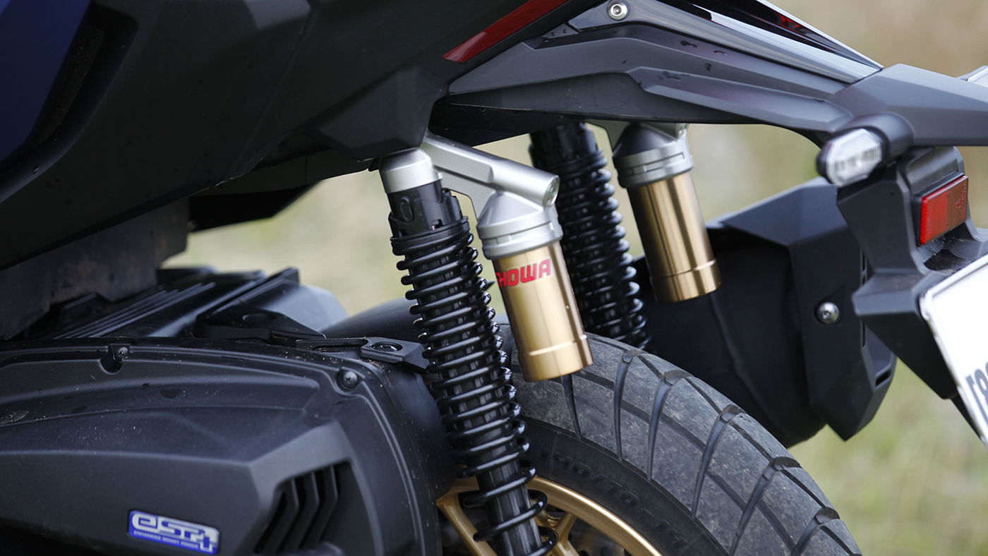 Một trang bị ghi điểm nhất của chiếc xe này nhất chính là cặp phuộc trước hành trình ngược (USD) đường kính 37mm và phuộc sau có bình dầu phụ và có thể điều chỉnh theo tải trọng. Trang bị này giúp xe triệt tiêu rung động cực tốt khi gặp ổ gà hoặc đường xấu, mang lại sự tự tin cho người lái.