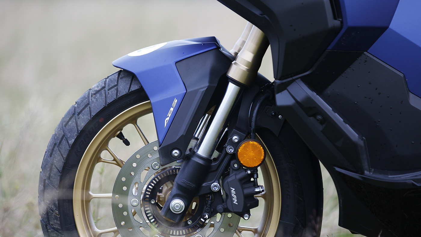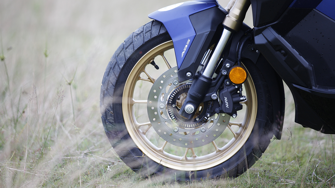 Chưa kể đôi lốp Metzeler Karoo Street (thương hiệu Đức thuộc quản lý của Pirelli) là dòng lốp xe địa hình lai đường trường (dual-purpose), tối ưu cho sự linh hoạt 70% đường nhựa (on-road) và 30% đường off-road, kết hợp giữa ổn định và khả năng vượt địa hình nhẹ như sỏi đá, đường đất. Đây chính là trang bị mà các đối thủ cùng phân khúc với ADV350 tại không có được.