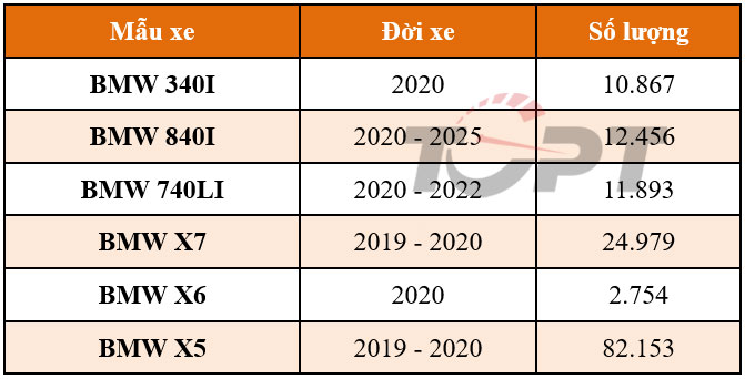 Tổng cộng, BMW phải triệu hồi 145.102 chiếc ô tô tại thị trường Mỹ, với đời xe 2019 - 2025, trong đó gồm nhiều mẫu xe khác nhau gồm: 340I, 840I, 740LI, X7, X6 và X5. Dự kiến, các xe trong diện ảnh hưởng sẽ được kiểm tra và thay thế bộ đề máy miễn phí nếu cần thiết.