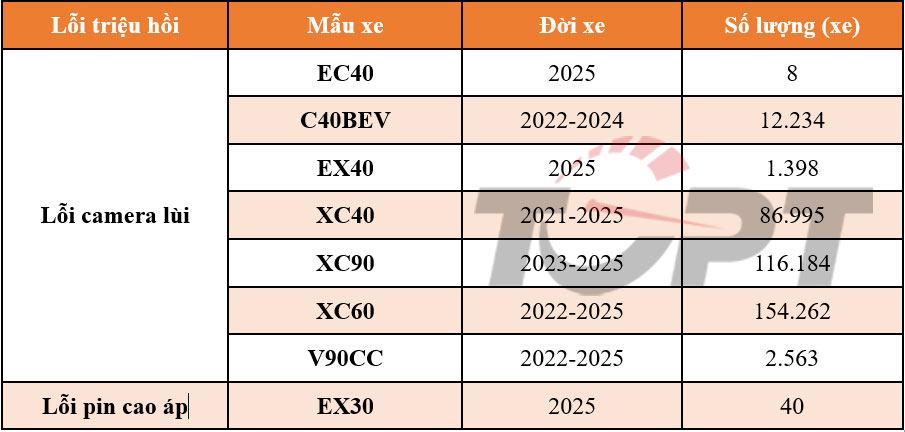 Tổng cộng, Volvo sẽ phải triệu hồi 413.151 xe tại thị trường Mỹ do lỗi trên (thuộc đời 2021 - 2025), với các mẫu gồm: XC40, V90, C40BEV, S90, V90CC, XC60, S60, V60, V60CC, XC90, EC40 và EX40. Dự kiến, các xe trong diện ảnh hưởng sẽ được cập nhật phần mềm tại đại lý hoặc thông qua mạng (OTA) để khắc phục lỗi.