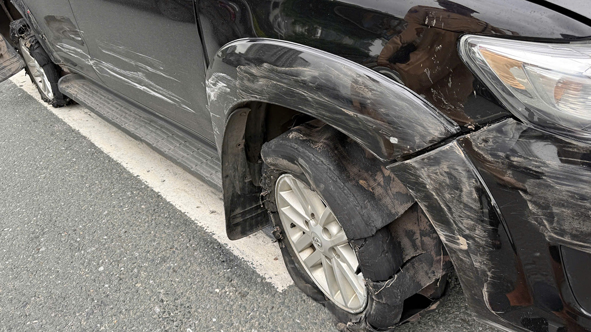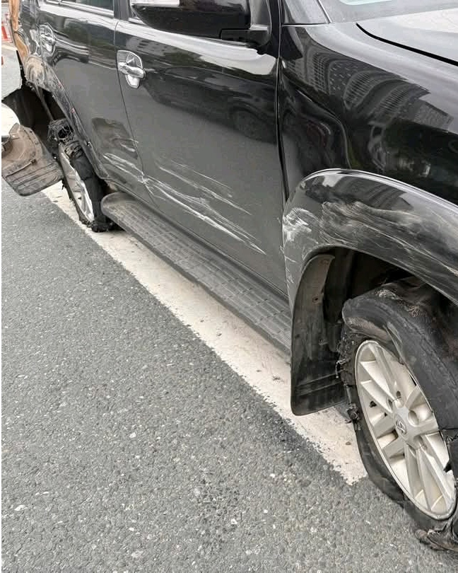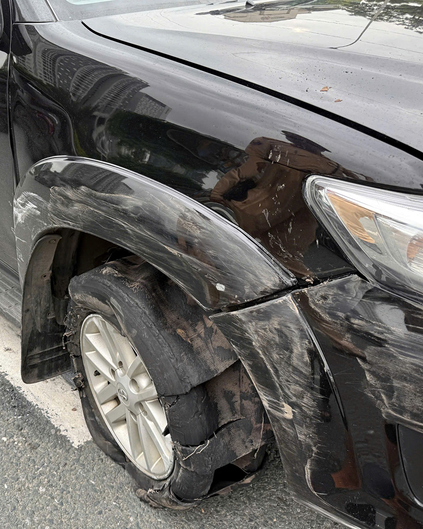 Ngoài ra, cơ quan chức năng đang xác định tình trạng tài xế này điều khiển xe với một bên hông xe xây xát và nổ nát cả hai lốp xe.