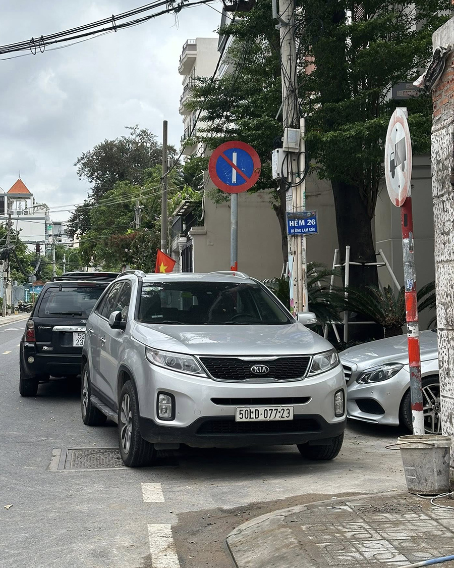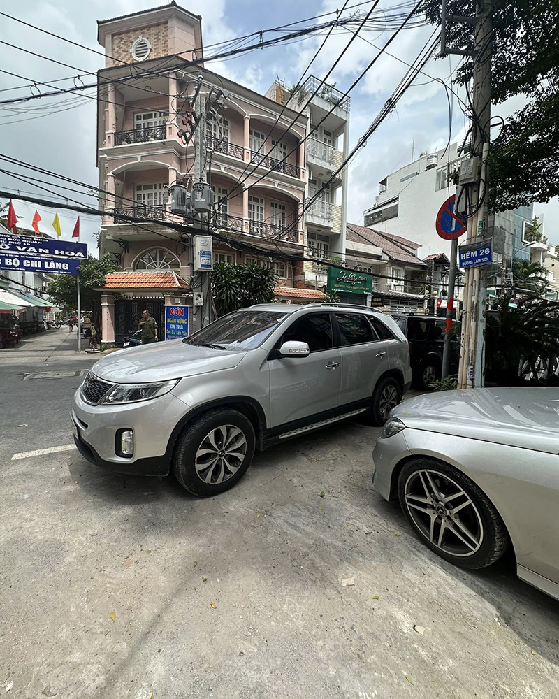 Hèm 26 đường Lam Sơn, phường Phú Nhuận, Tp Hồ Chí Minh; Tài xế Mercedes-Benz E-class biển kiểm soát 51F 16370 đổ xe ngay đầu hẻm, cản trở lối đi lại. Tài xế KIA Sorento biển kiểm soát 50LD 07723 đi về không vào được, bực mình đỗ ngay chặn đầu không cho ra. Chỉ khổ khu phố văn hoá muốn giải quyết êm đẹp giữ tình làng nghĩa xóm để lấy lối đi, ai ngờ cả hai tài xế vứt xe để đó thi gan. Báo hại dân trong hẻm.