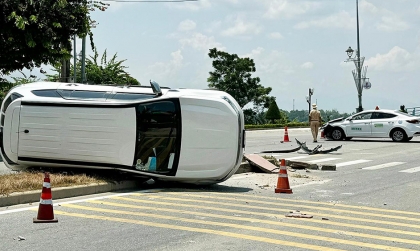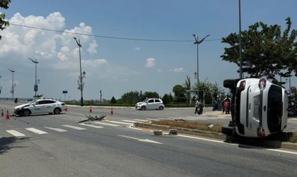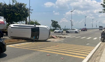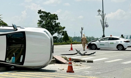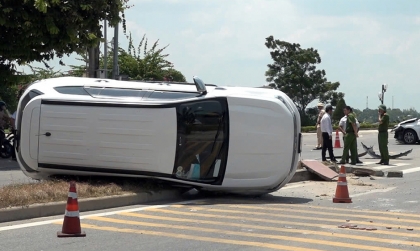 Cú va chạm ở tốc độ cao đã khiến chiếc SUV lao thẳng lên con lươn rồi lật nghiêng giữa đường. Vụ tai nạn làm cho hai xe ô tô hư hỏng nghiêm trọng nhưng rất may không có thương vong về người. Sự việc xảy ra vào ngày 23/8 vừa qua