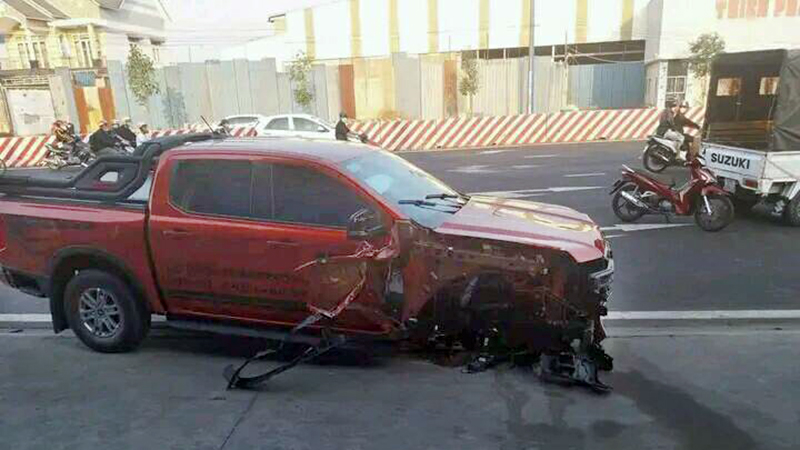 Ảnh TNGT: Đưa xe cho bảo vệ lái, chủ xe  Ford Ranger Raptor gặp rắc rối lớn khi gặp tai nạn liên hoàn