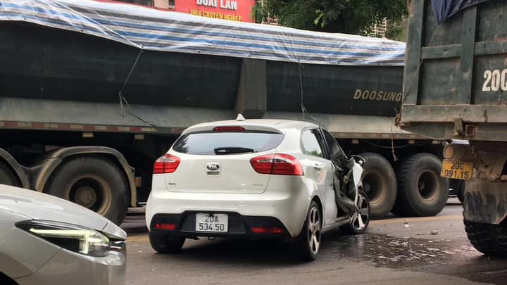 Ảnh TNGT: Gây sự nhầm đối tượng, KIA Soluto bị "Hồ vổ" đâm toác đầu